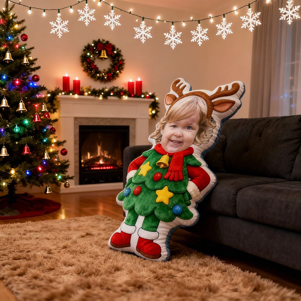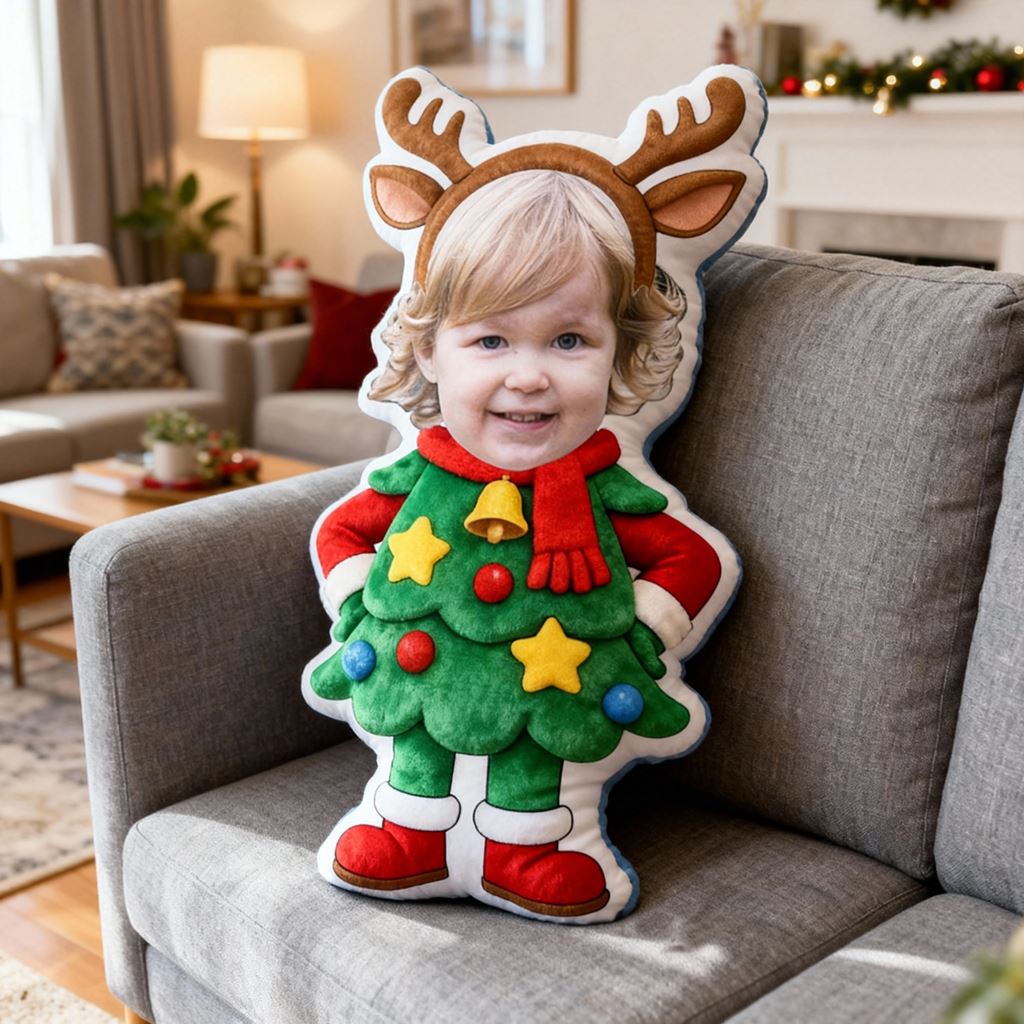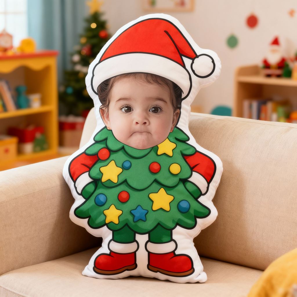 Individuelles Fotokissen mit Cartoon-Porträt und Weihnachtsbaum-Motiv Heimdekoration für Kinder