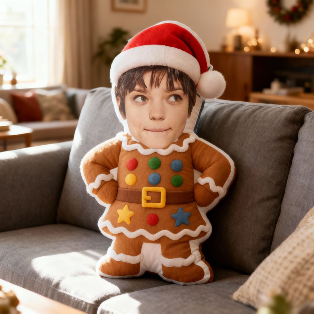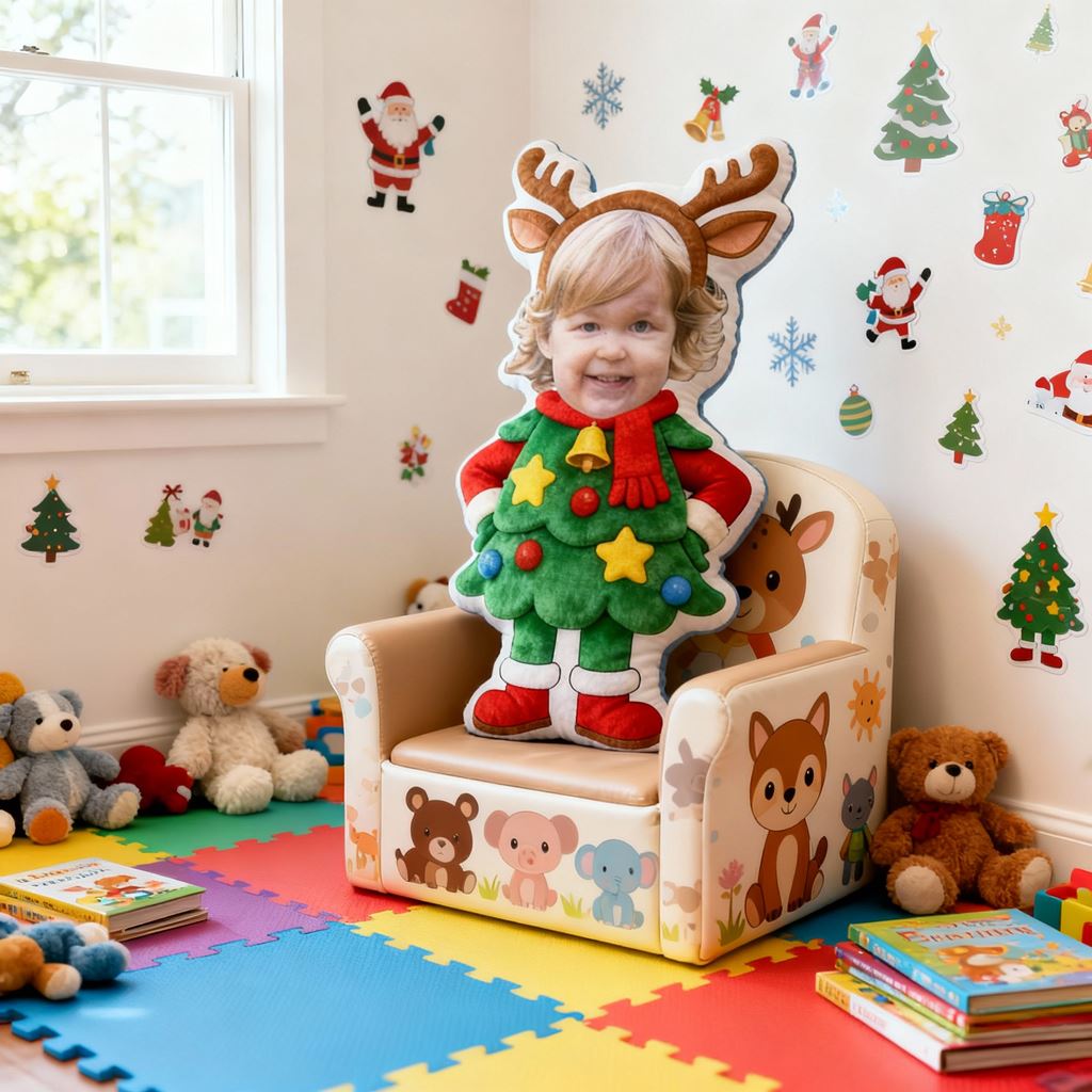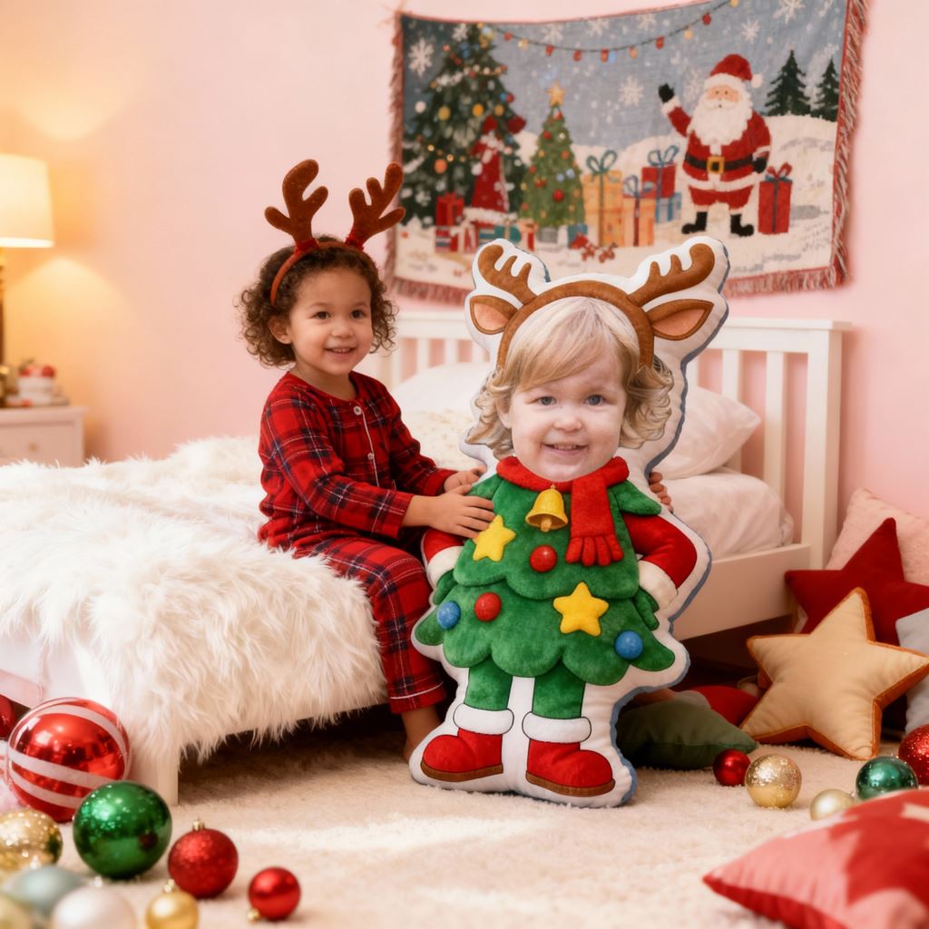 Individuelles Fotokissen mit Cartoon-Porträt und Weihnachtsbaum-Motiv Heimdekoration für Kinder