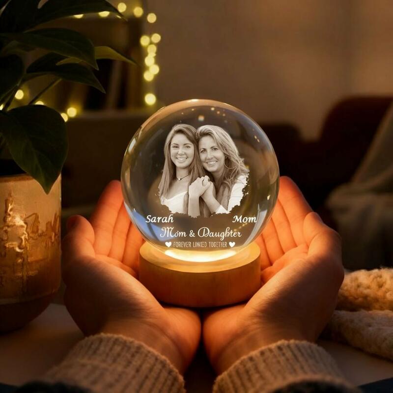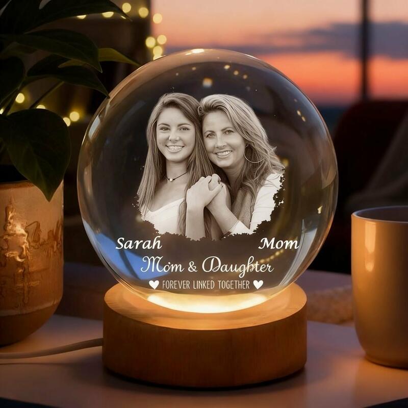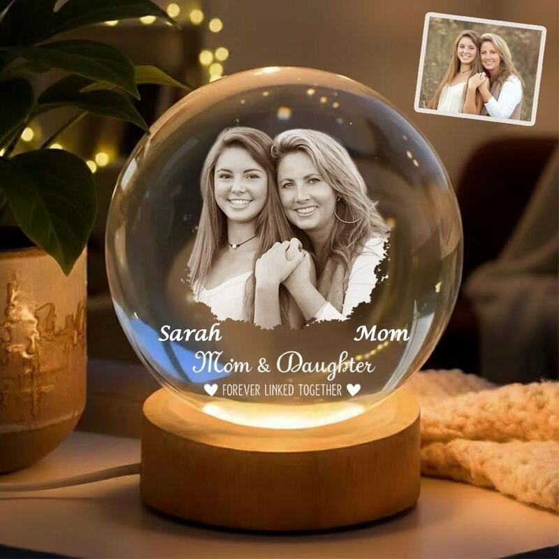 Individuell gestaltete Kristallkugel-Lampe mit Fotos von Mutter und Tochter Nachtlicht zum Muttertag