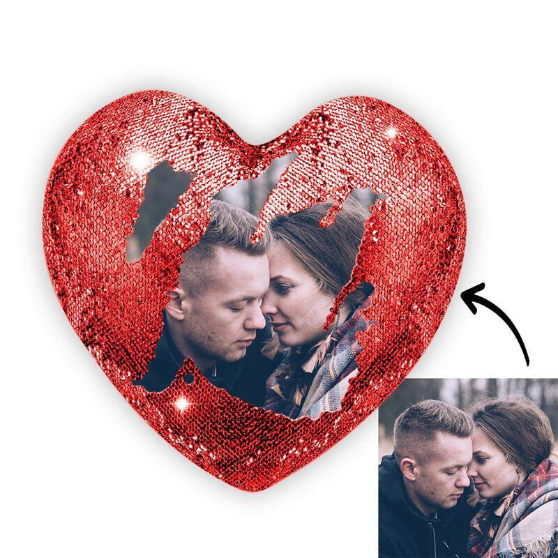 Heart Magic Sequins Custom Photo Pillow With Inserts