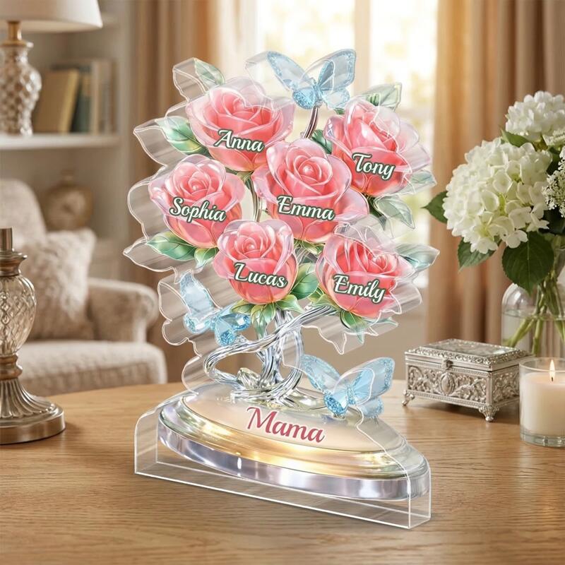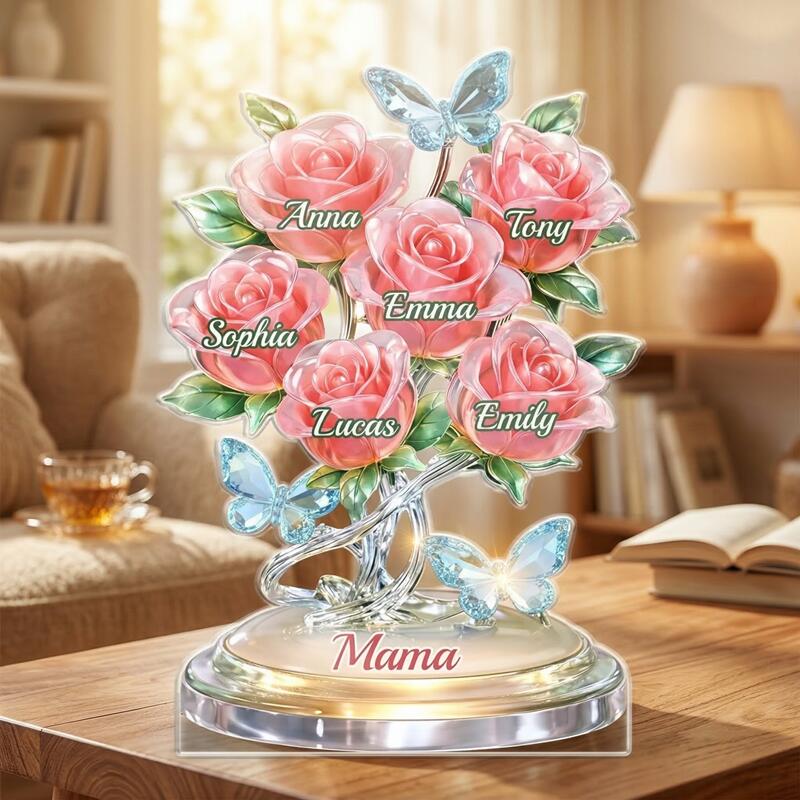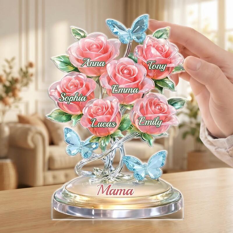 Personalisierte Acrylblock-Plakette Individuelle Rosennamen Elegantes Blumenständer-Designgeschenk für Mama