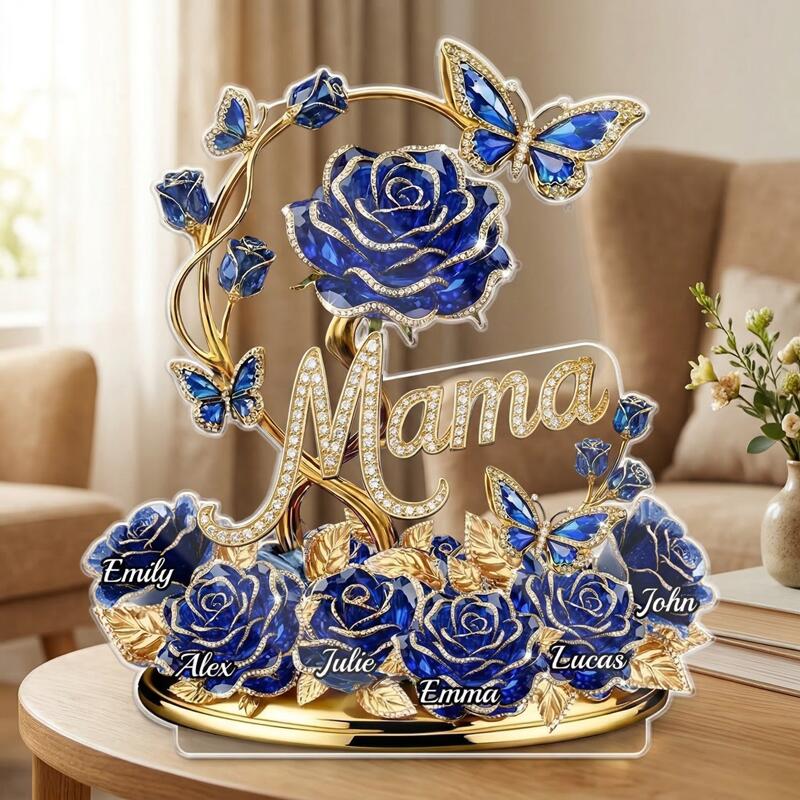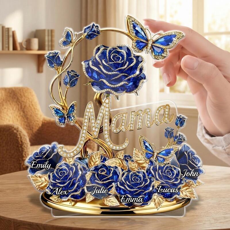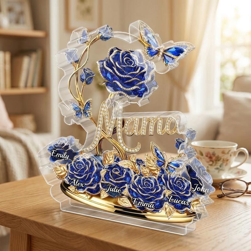 Personalisierte Acrylblock-Plakette Schöner blauer Rosenstand Individuelles Namensdesign-Geschenk zum Muttertag