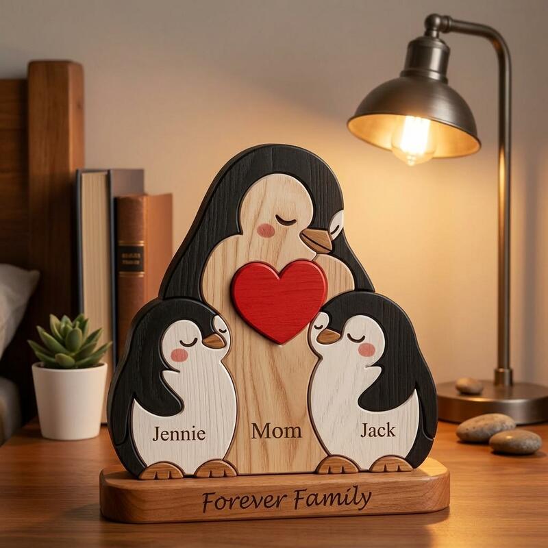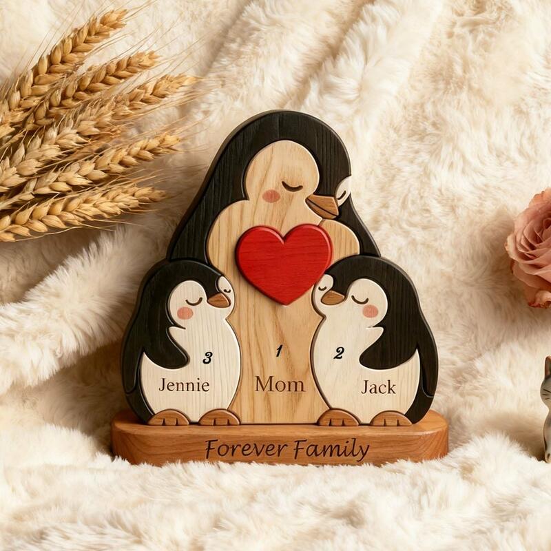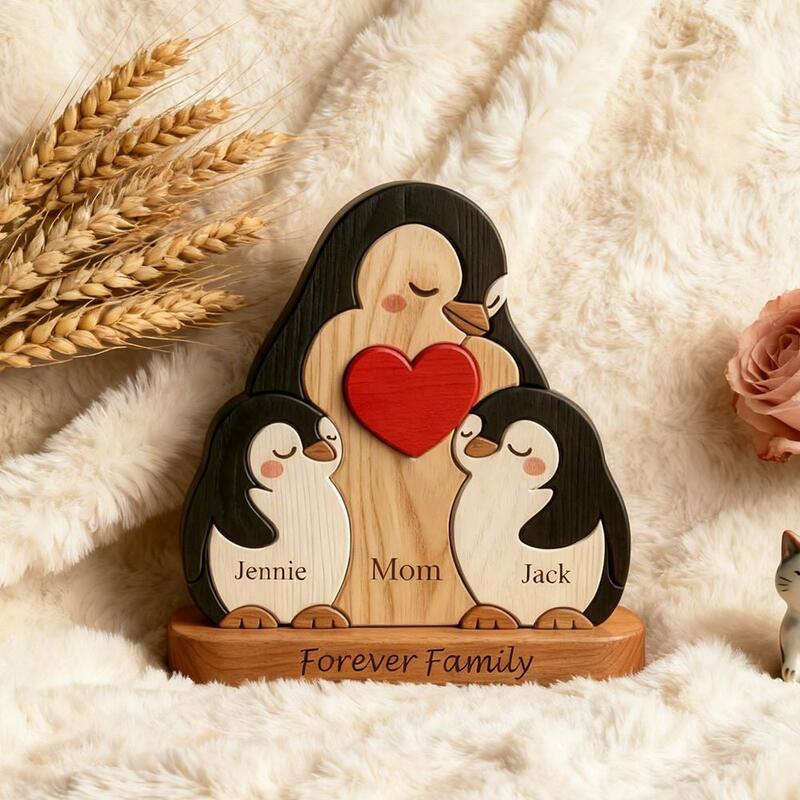 Personalisiertes entzückendes Pinguin-Holzpuzzle herzerwärmendes Geschenk für alleinerziehende Mütter