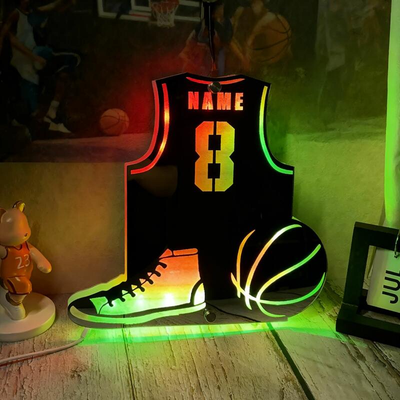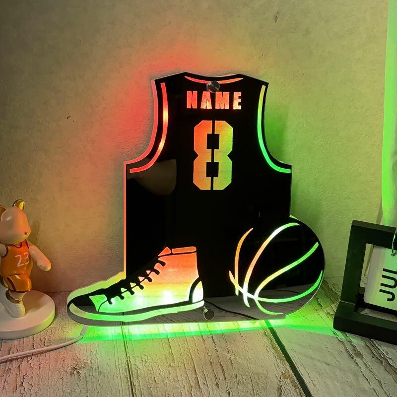 Personalisierte Basketball-Trikots mit Spiegel und Beleuchtung individuell gestaltbare Namen und Nummern für Sportbegeisterte