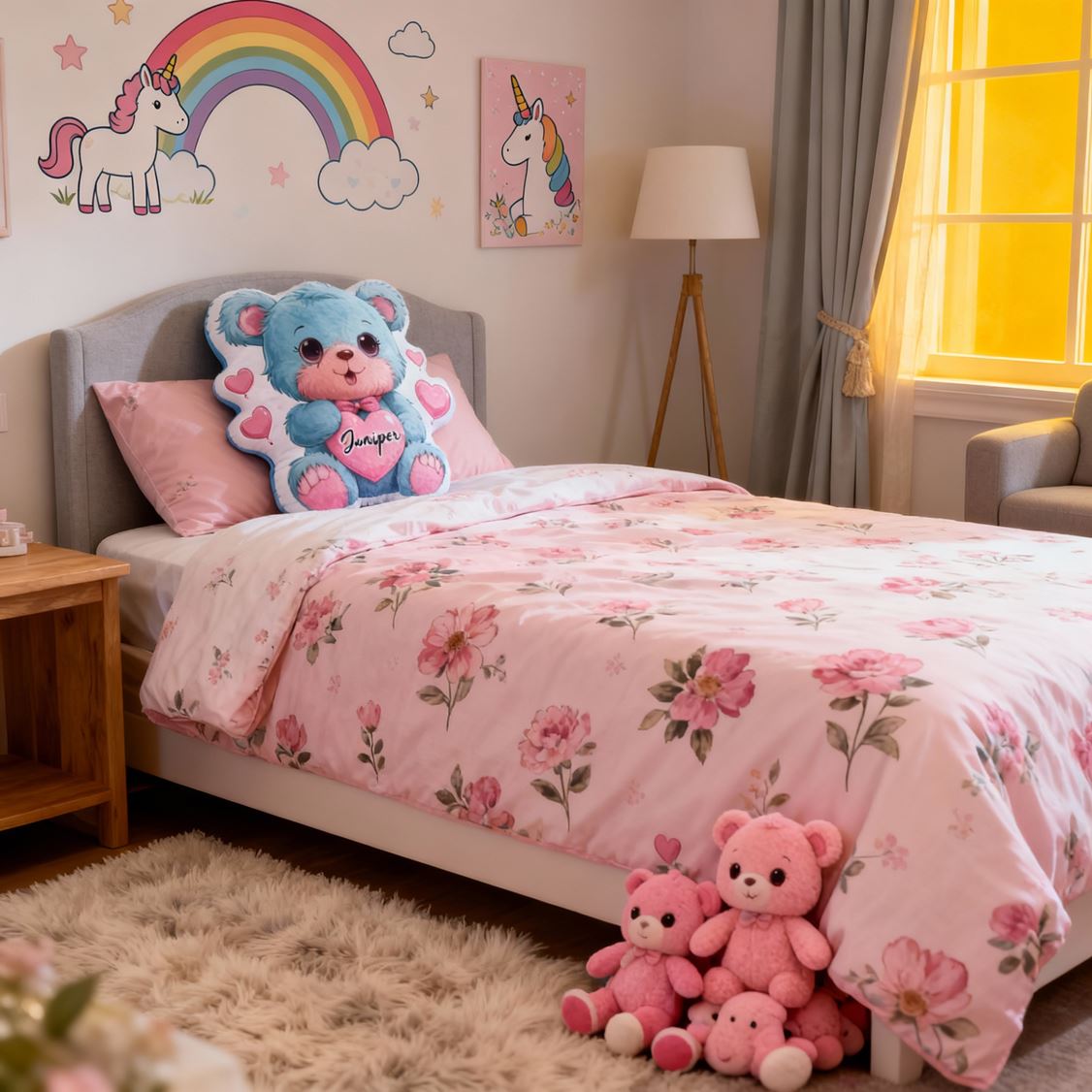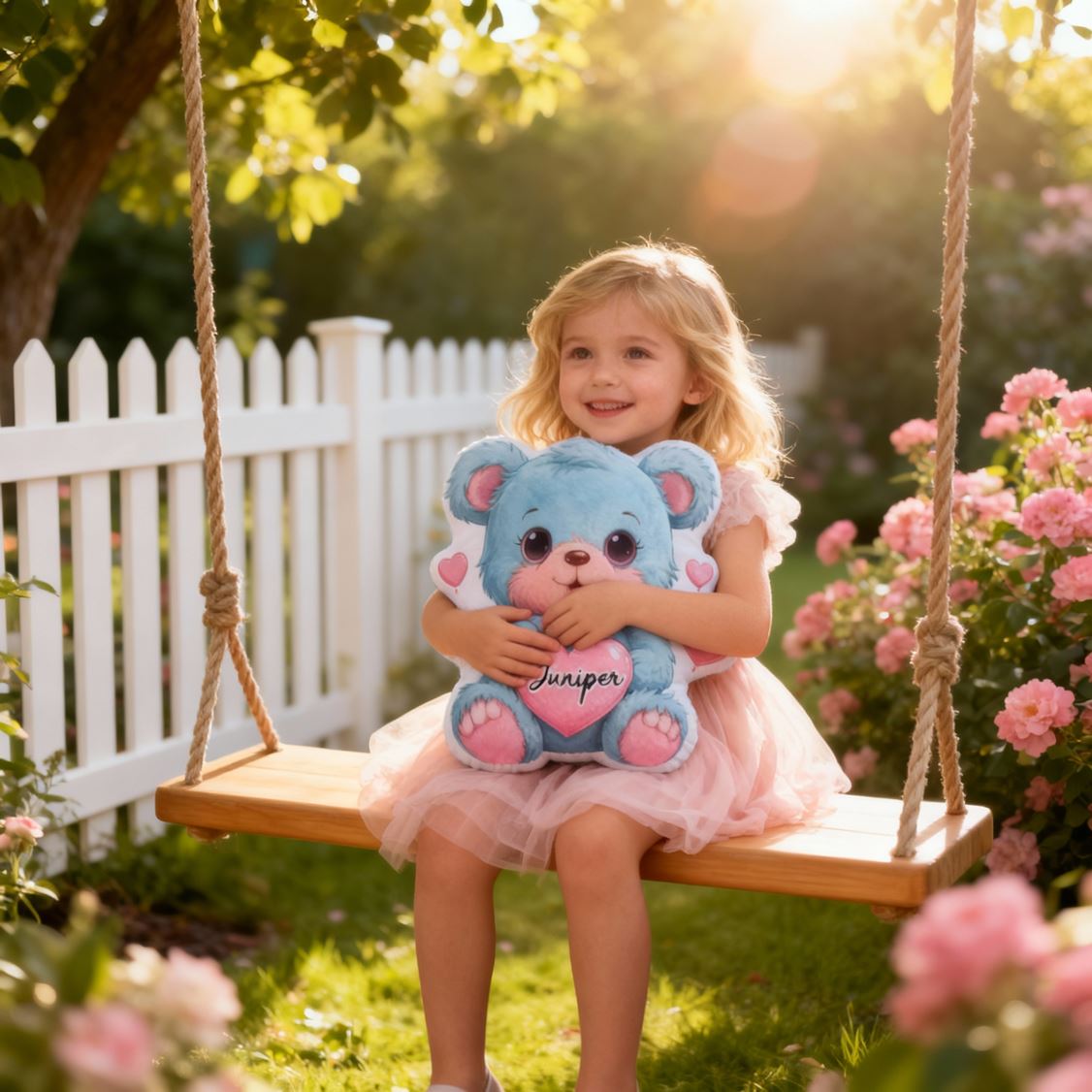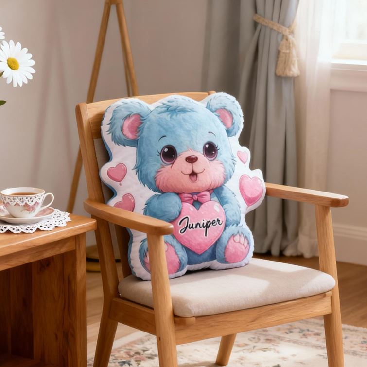 Personalisiertes blaues herzförmiges Bärenkissen mit dem Namen des Kindes ein Geburtstagsgeschenk für Kinder