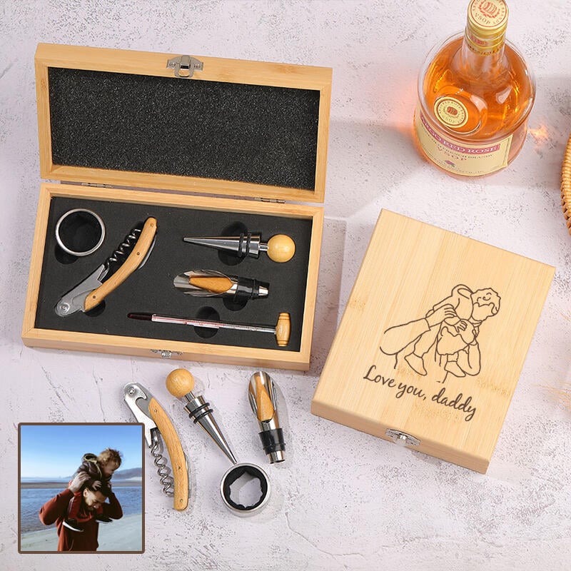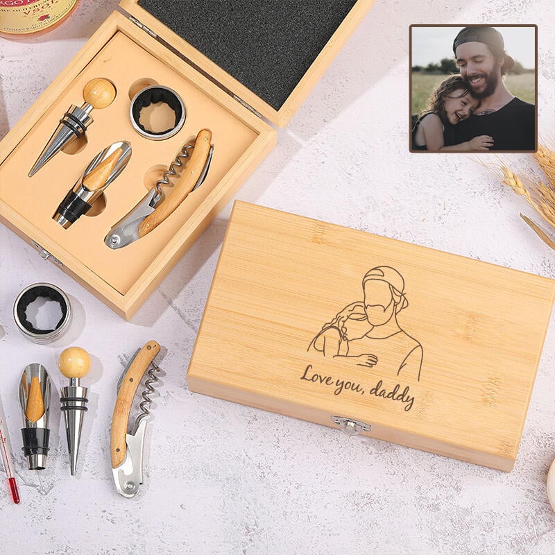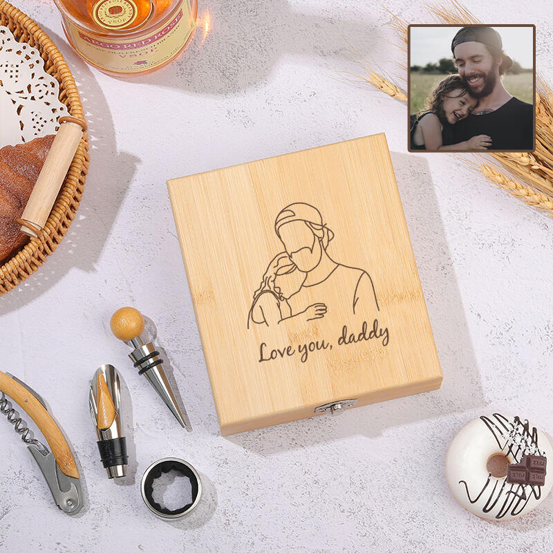 Personalisiertes Flaschenöffner-Set Individuelles Foto Strichzeichnung Design Einzigartiges Geschenk für Trinkfreunde Vater