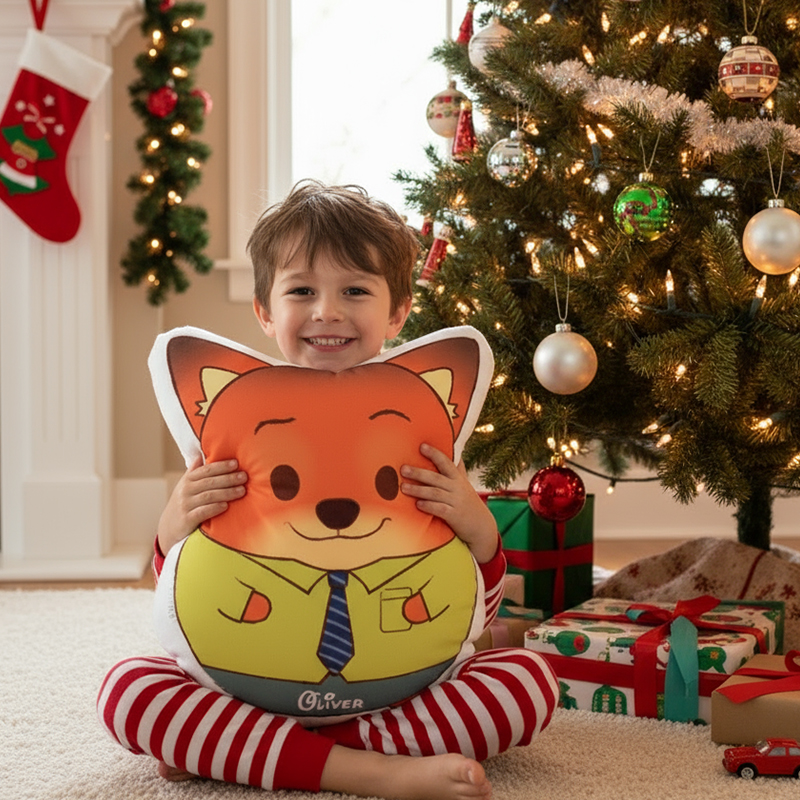 Personalisiertes Cartoon-Fuchs-Kissen Mit Namen personalisierbar Süßes Weihnachtsgeschenk für Jungen