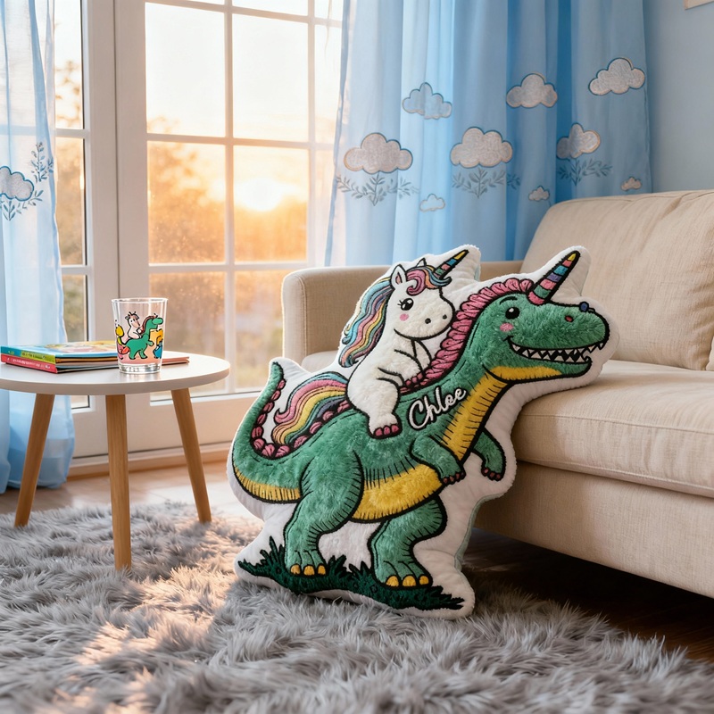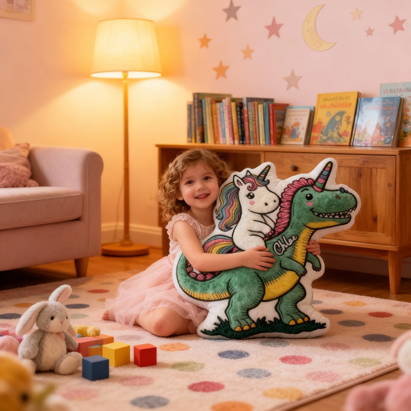 Personalisierte Kissen in Cartoon-Form Niedliches Einhorn und Dinosaurier-Design Perfektes Geschenk für Kinder
