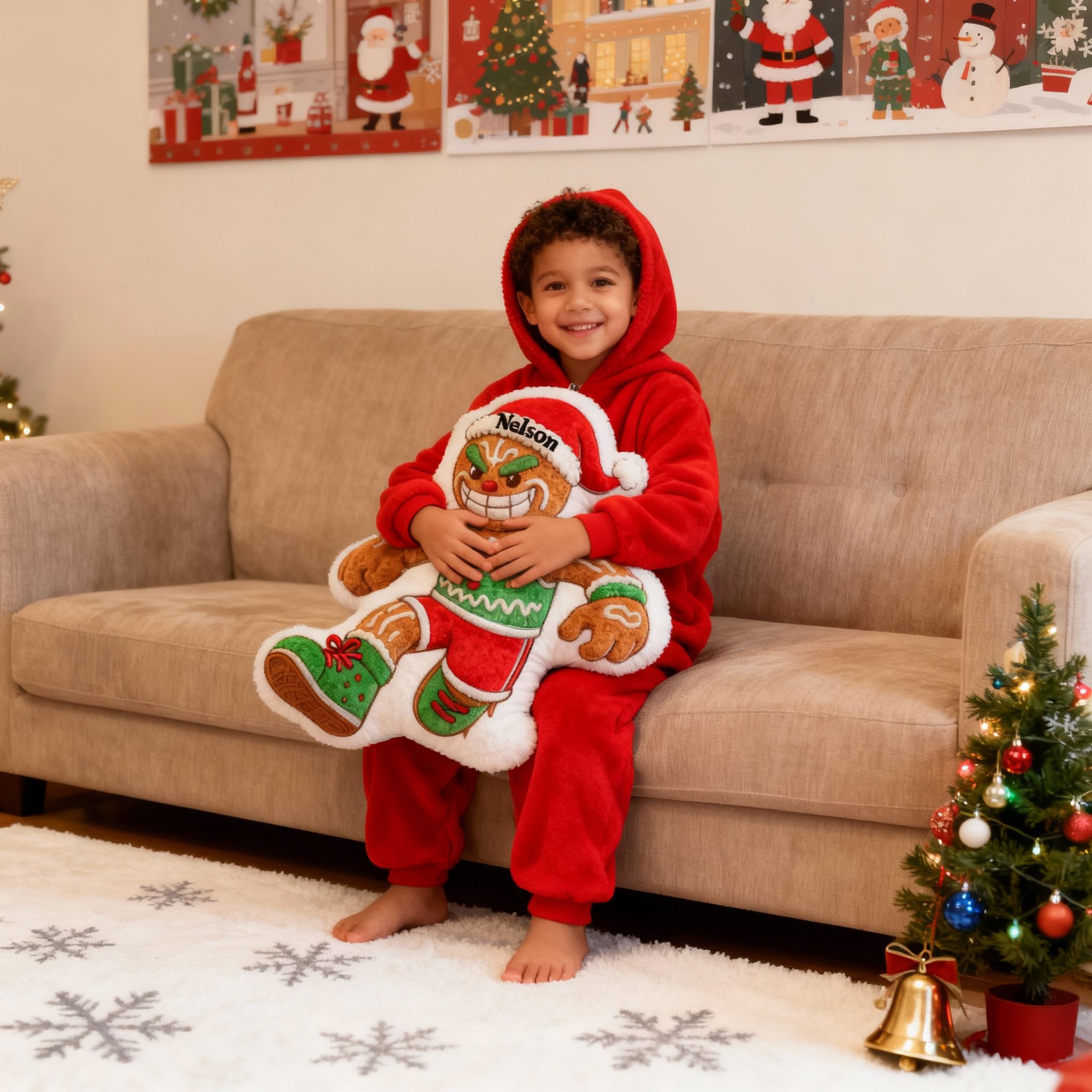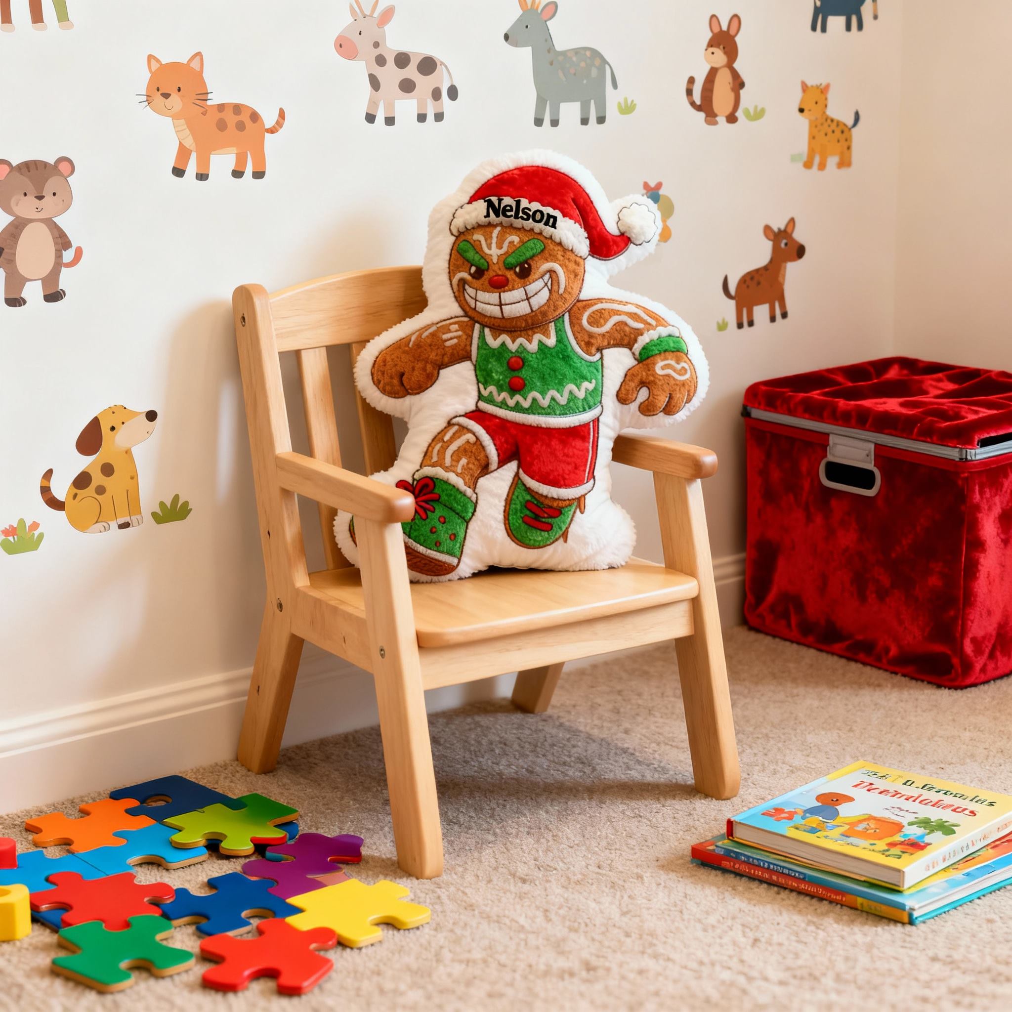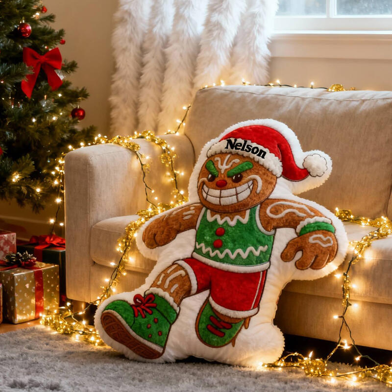 Personalisiertes Weihnachts-Lebkuchenmann-Kissen Mit Ihrem Namen personalisierbar Lustiges Geschenk für Jungen