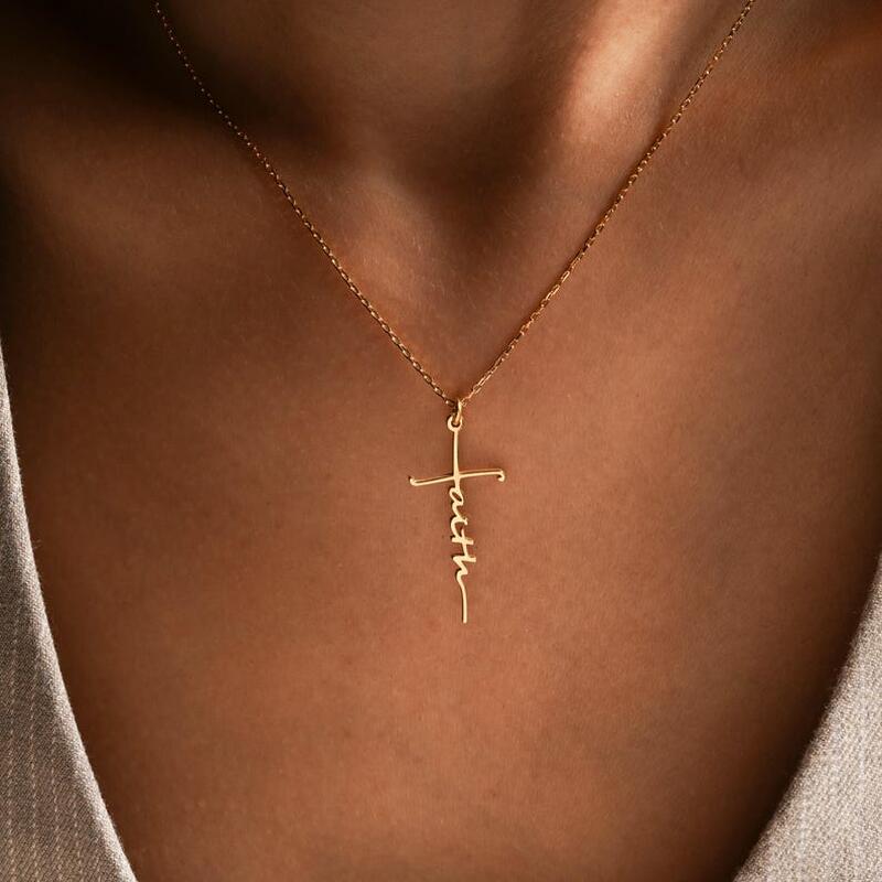 Personalisierte Kreuz-Namenshalskette mit Geschenk für die Familie