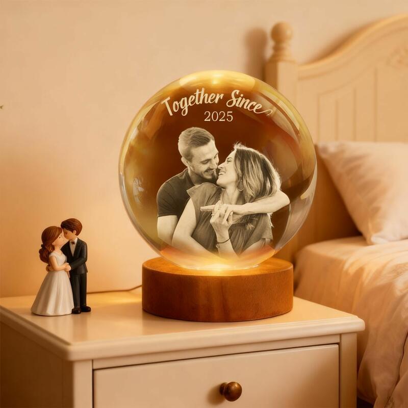 Personalisierte Kristallkugel-Lampe mit individuellem Foto Geschenk zum Jahrestag für den Freund