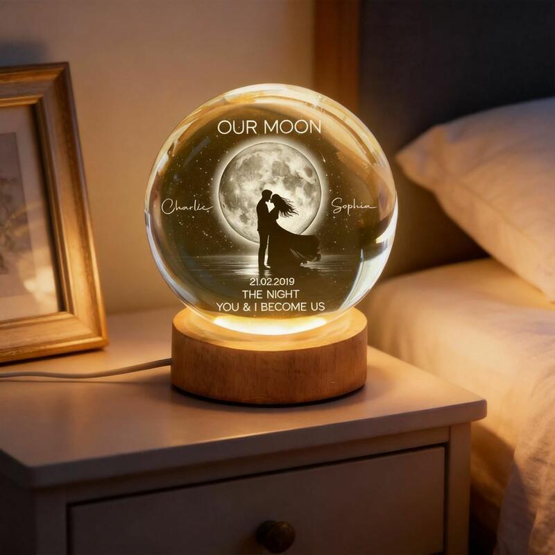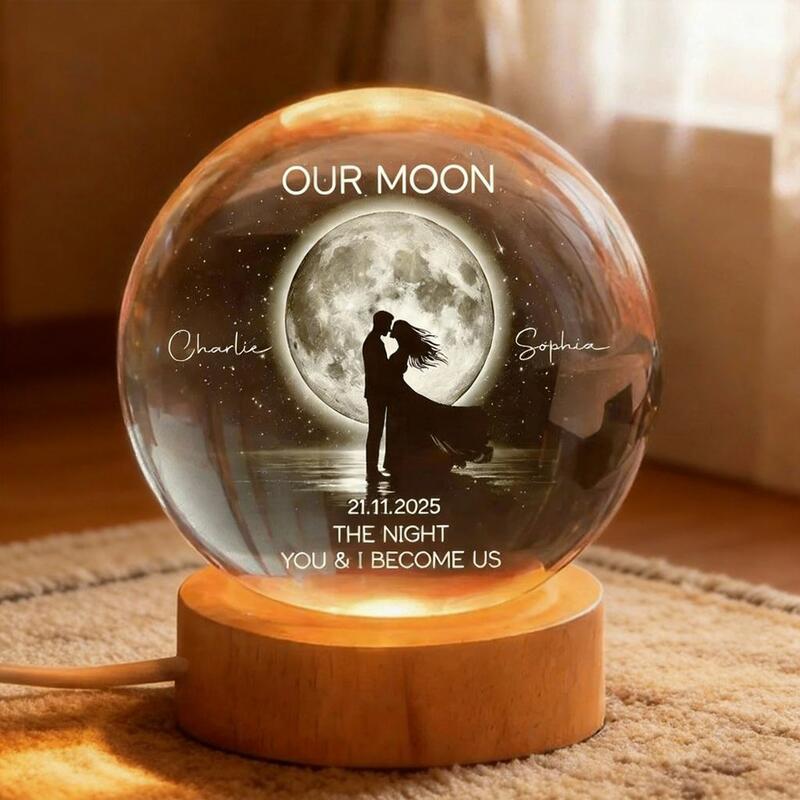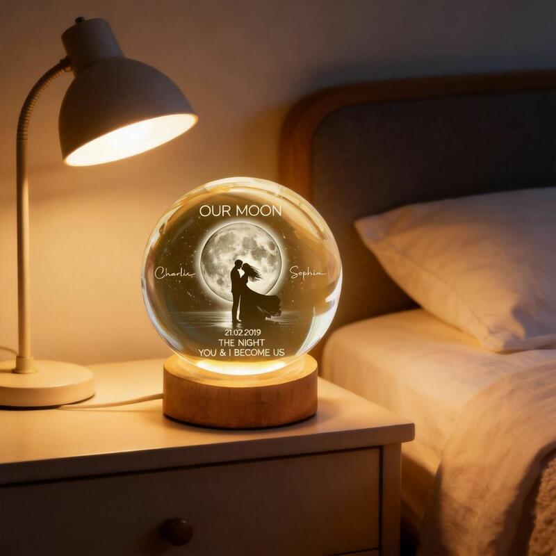 Personalisierte Kristallkugel-LED-Nachtlampe Paar küsst sich im Mondlicht Valentinstagsgeschenk für sie