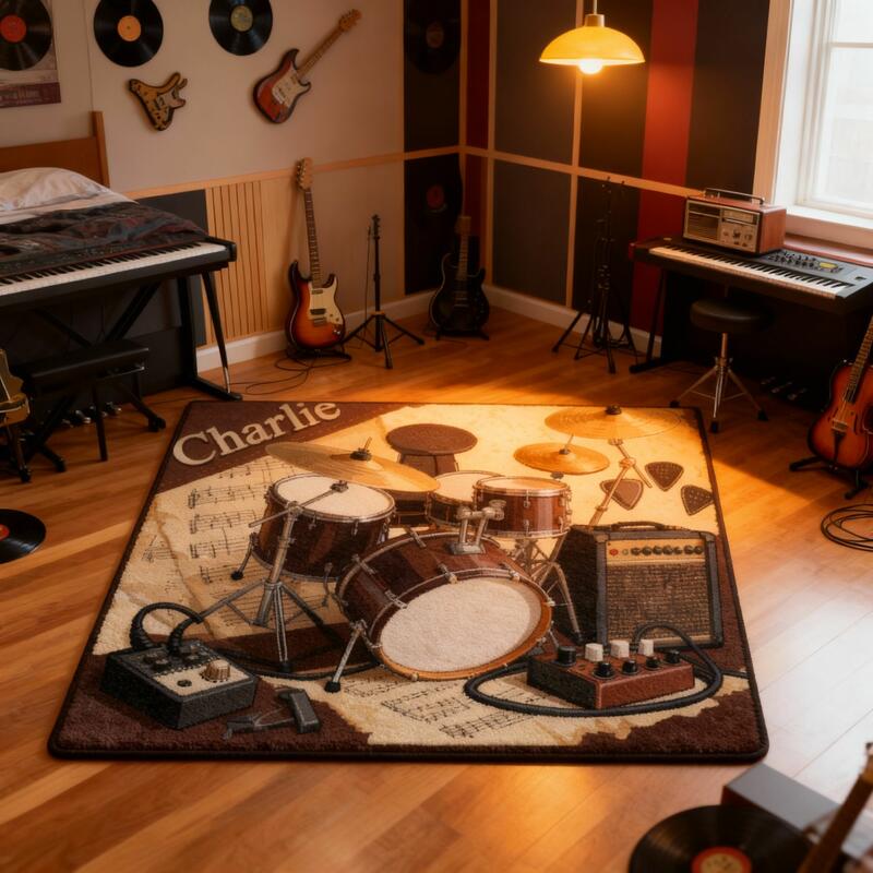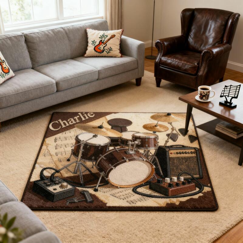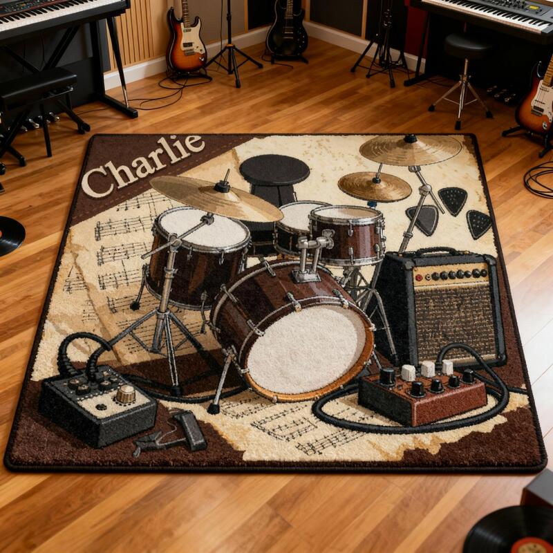 Personalisierte Fußmatten mit Schlagzeugmuster individuell mit Ihrem Namen gestaltbar ein lustiges Geschenk für Musikliebhaber