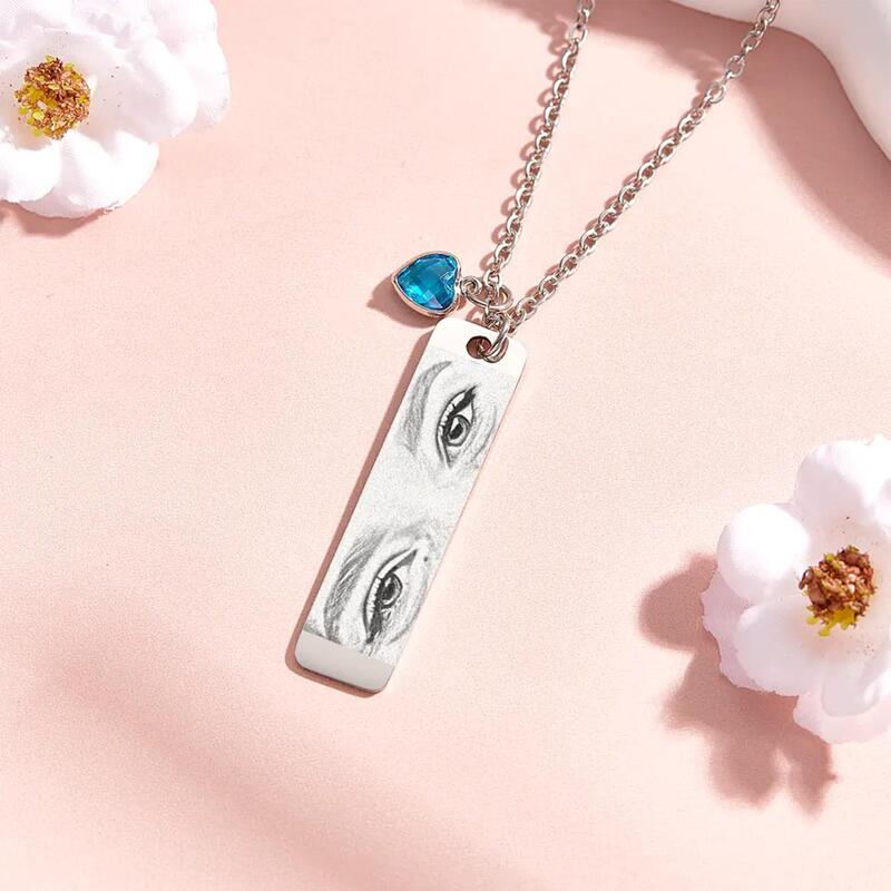 Personalisierte Augen-Foto-Halskette mit Geburtsstein Besonderes Geschenk für die Familie