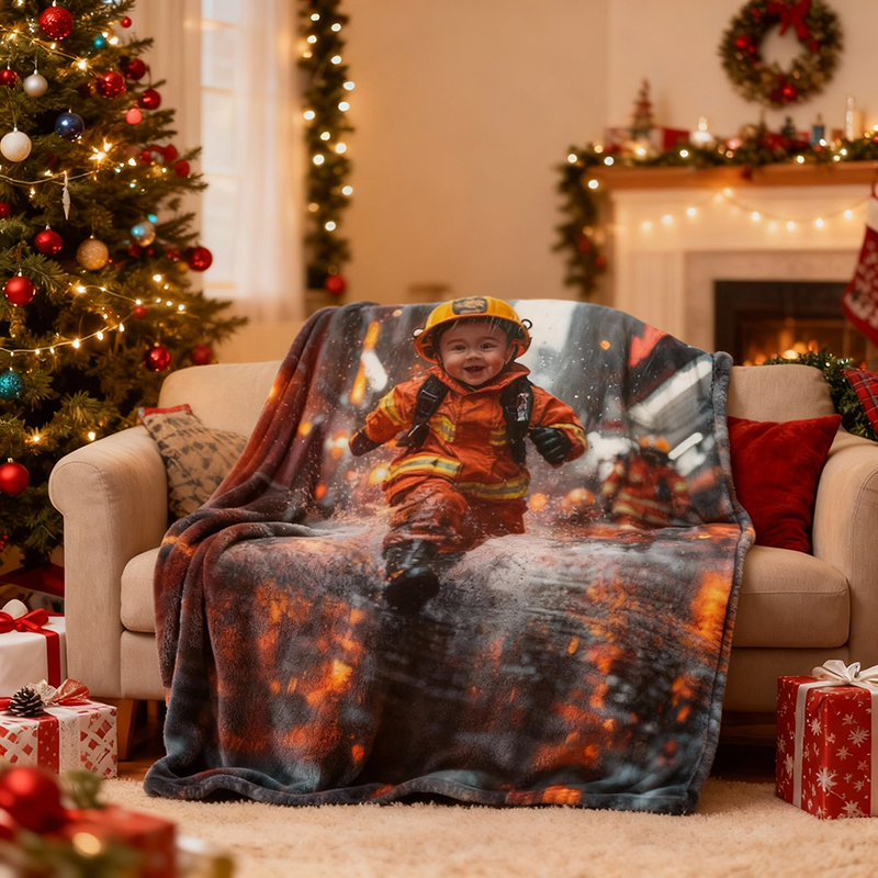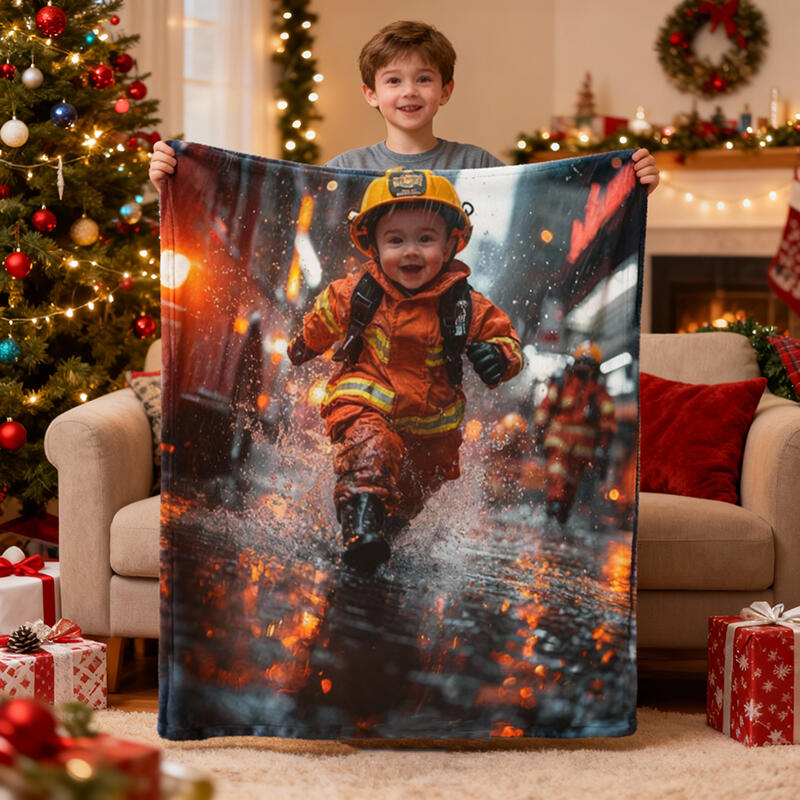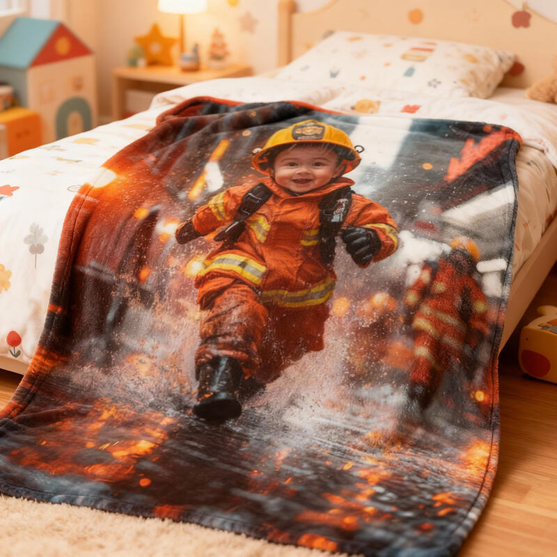 Personalisierte Fotodecke mit Feuerwehrmann-Design Ein wertvolles Geschenk für Kinder