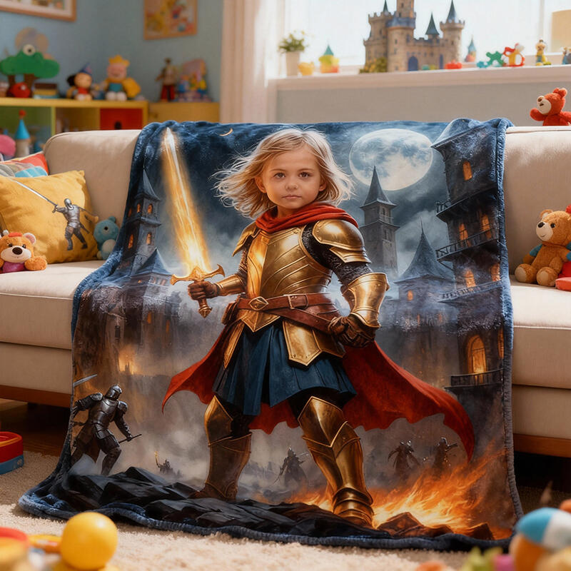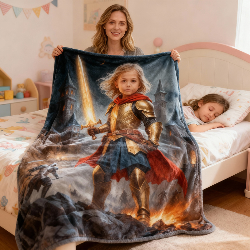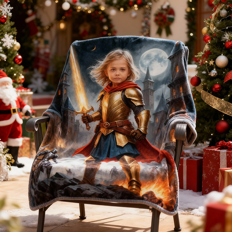 Personalisierte Gesichtsporträt-Decke mit Krieger-Design Kreatives Geschenk für Ihre Tochter