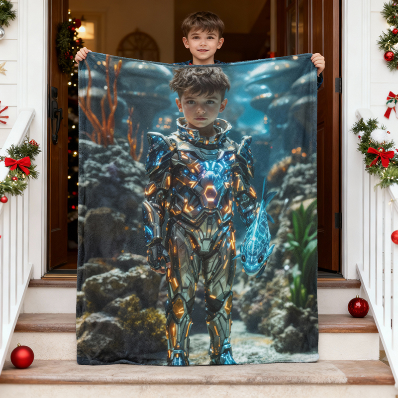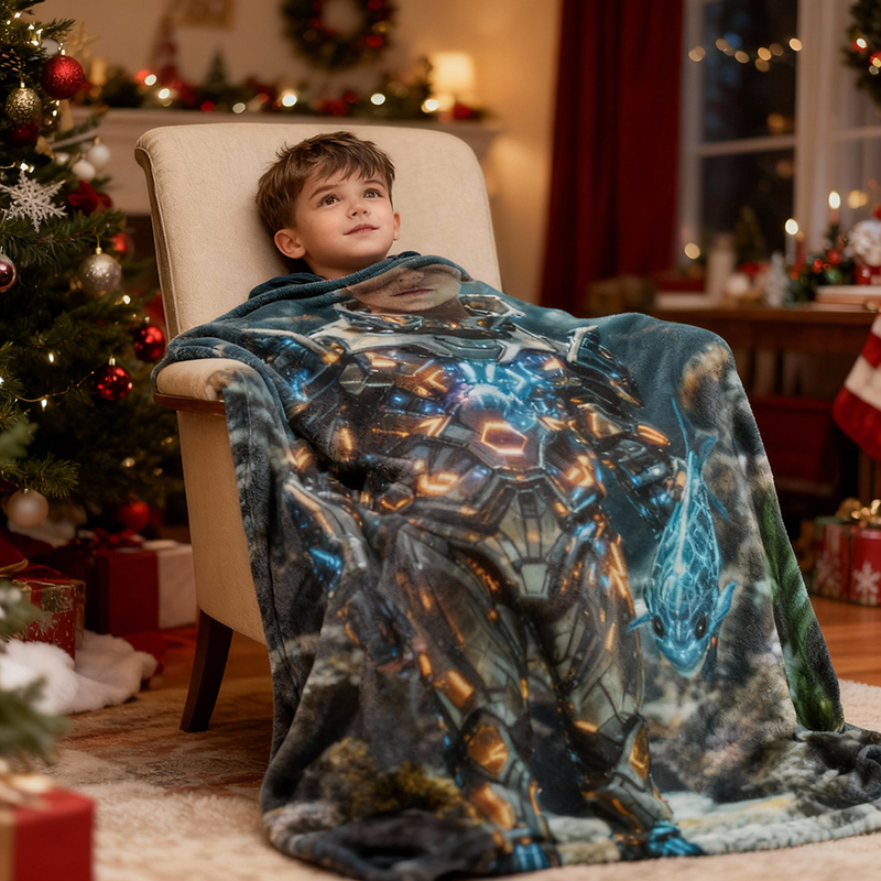 Personalisierte Fotodecke mit Robotermotiv Interessantes Geschenk für Jungen