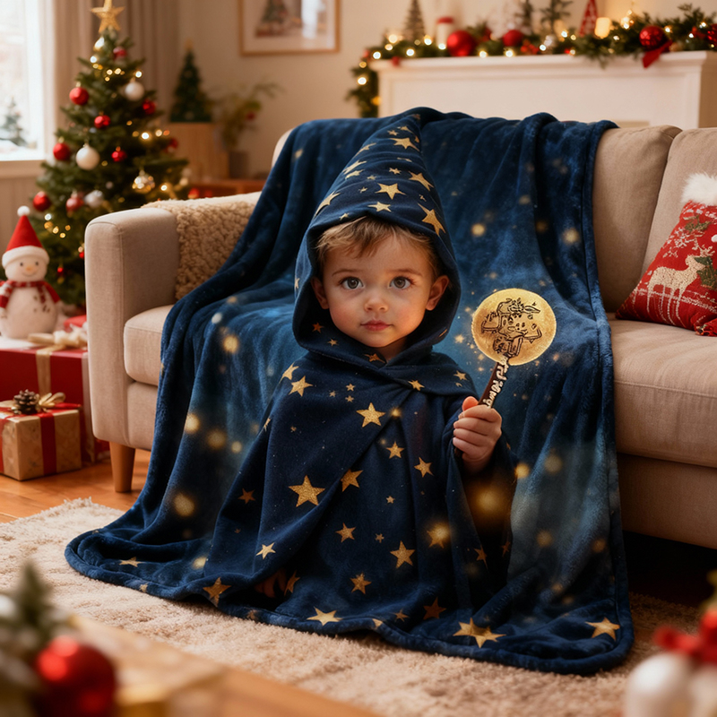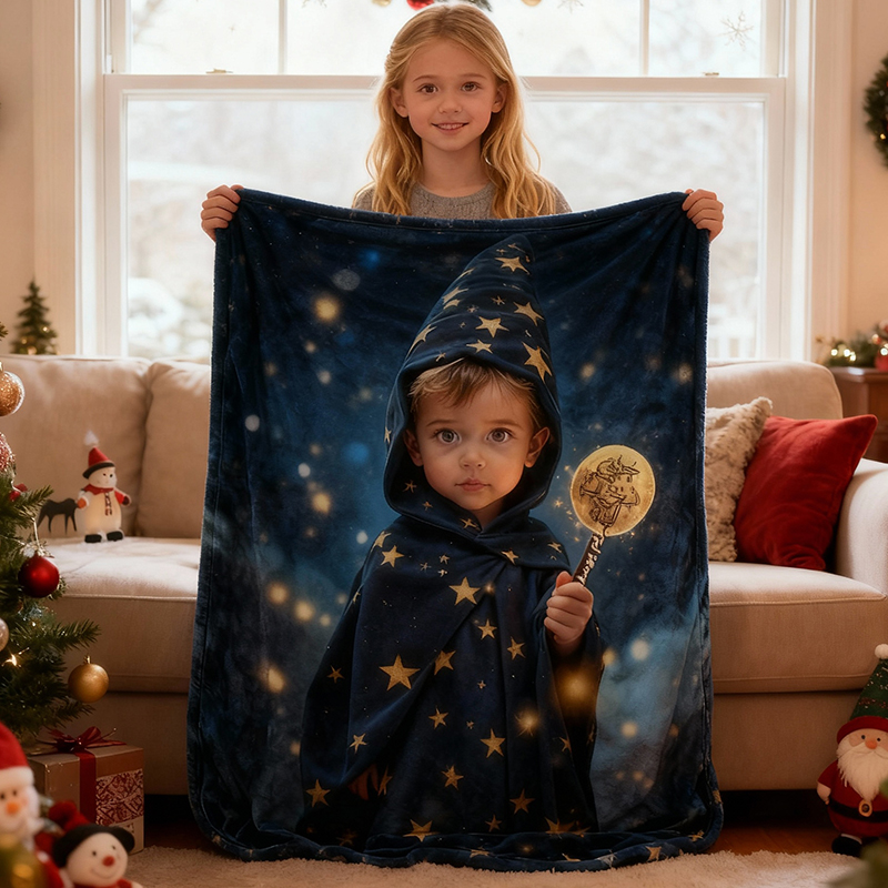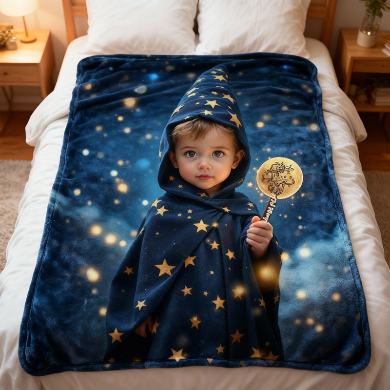 Personalisierte Fotodecke mit Zauberer-Motiv Lustiges Geschenk für Babys