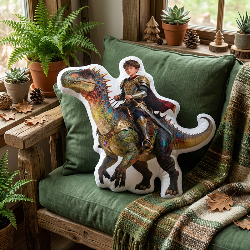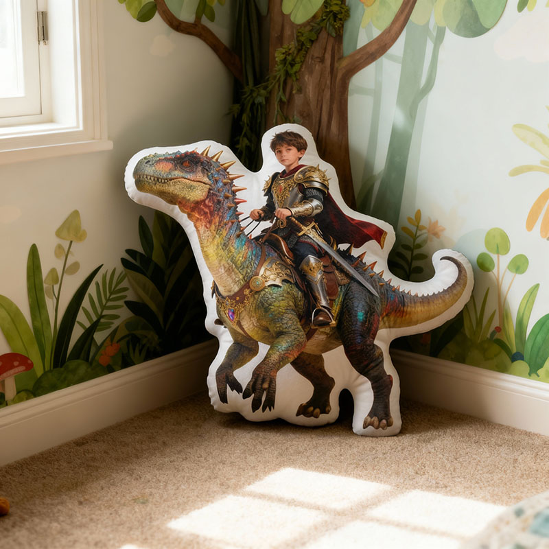 Personalisiertes Gesichtsporträt-Kissen mit Dinosaurier-Muster Lustiges Geschenk für Jungen