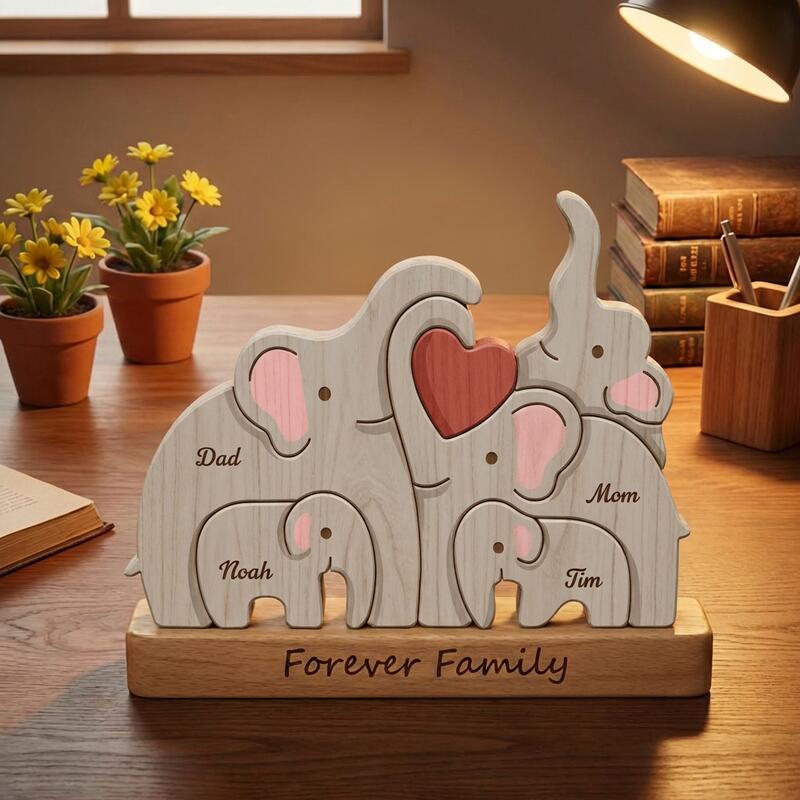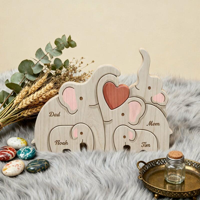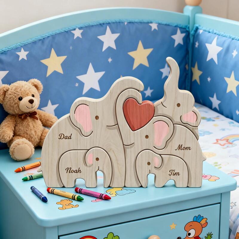 Personalisiertes Holzpuzzle mit grauen Elefanten mit Namen anpassbar Geschenk zum Muttertag