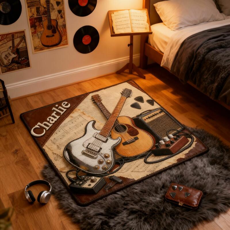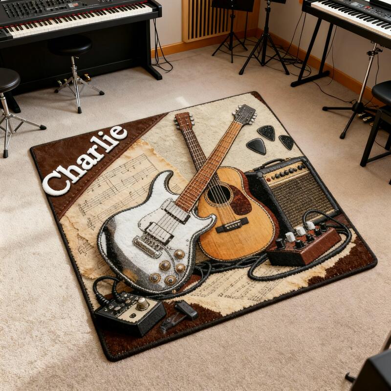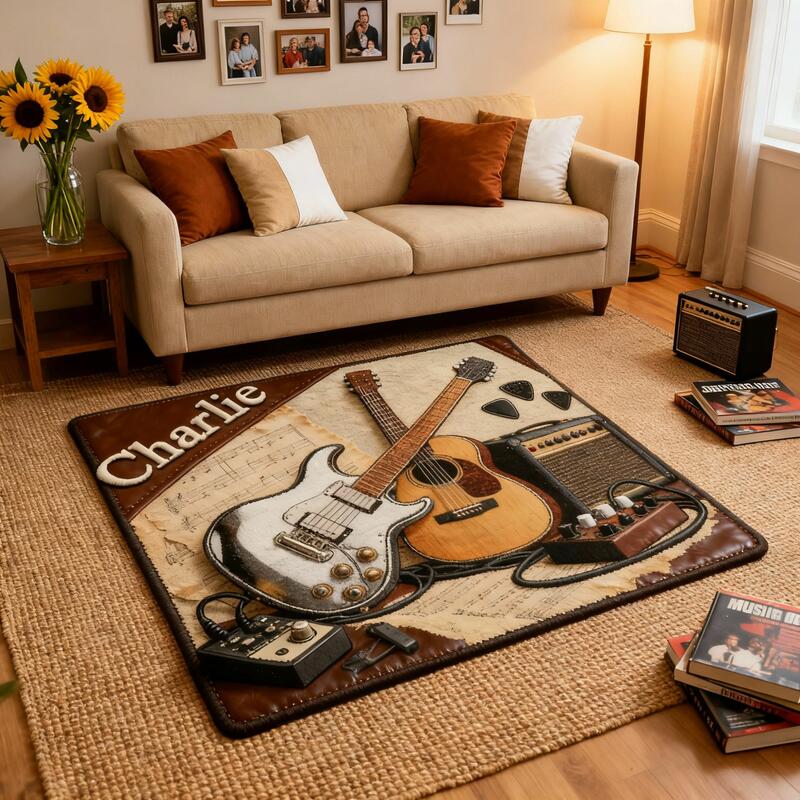 Personalisierte Fußmatten mit Gitarrenmuster individuell mit Namen gestaltbar lustige Geschenke für Musikliebhaber