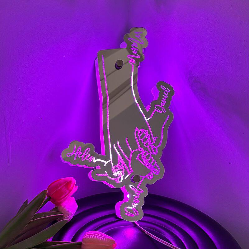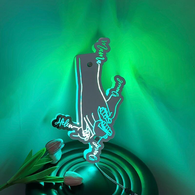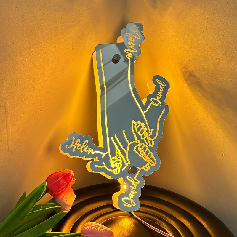 Personalisierte Spiegel-Lampe mit Hand-Holding-Muster mit personalisierbarem Namen ein herzliches Geschenk für Mama