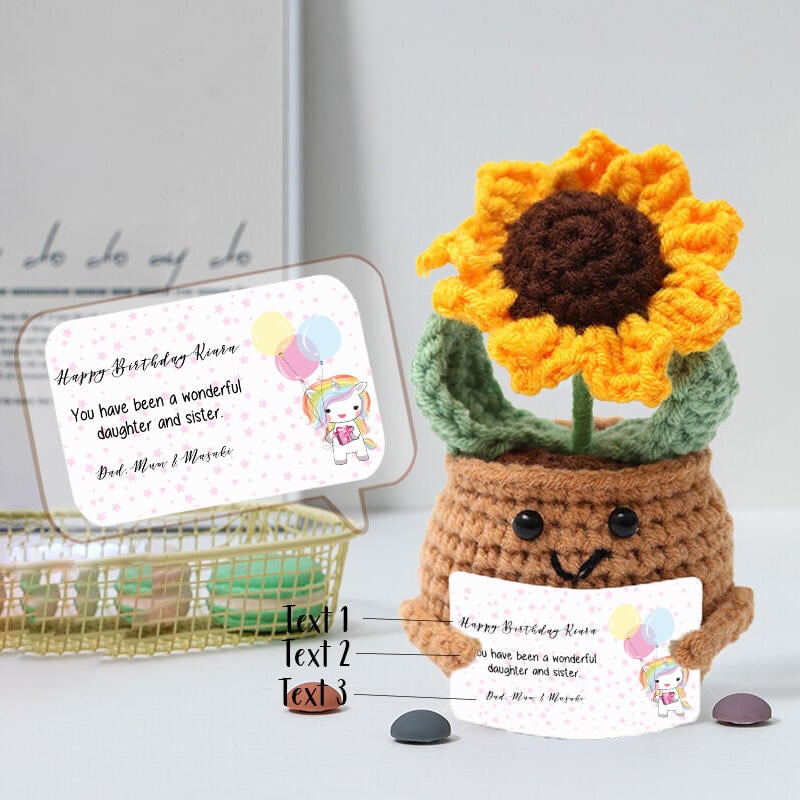 Personalisierte handgefertigte Häkelpuppe mit individueller Gravurkarte und Einhornmuster Süßes Geschenk zum Geburtstag