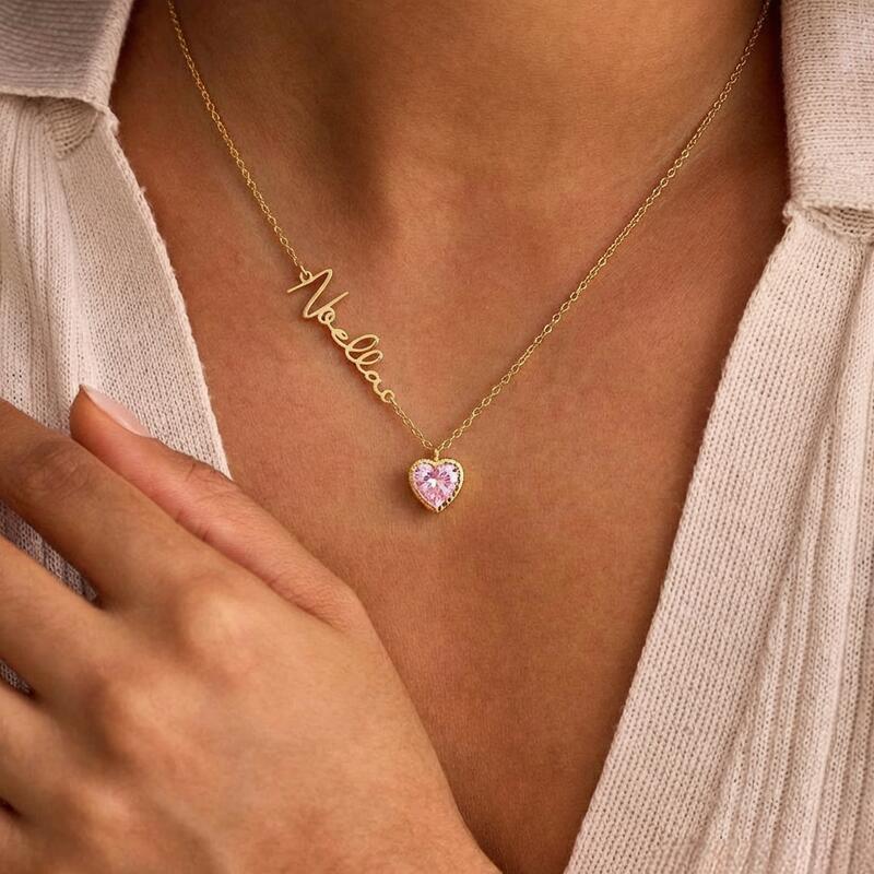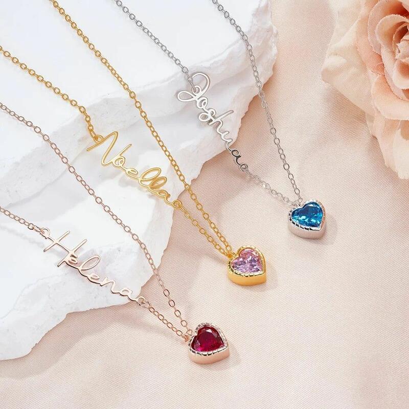 Personalisierte herzförmige Geburtsstein-Halskette Romantisches Geschenk mit Namen für die Ehefrau