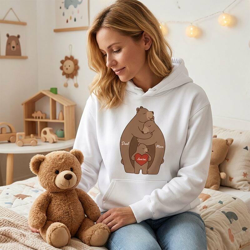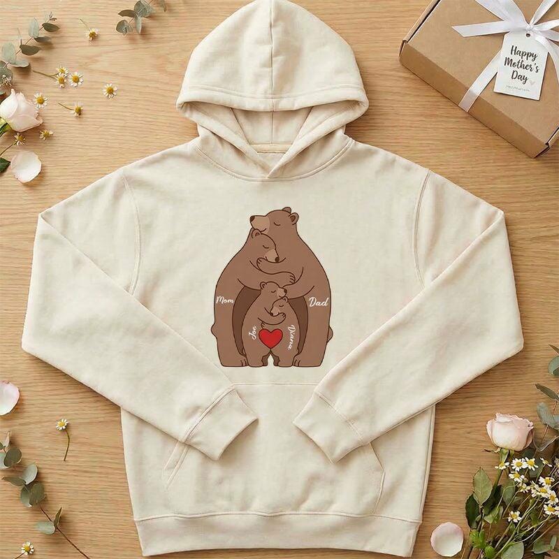 Personalisierter Hoodie Individuelle Namen Niedliches Bärenfamilie-Puzzle-Design Entzückendes Geschenk zum Muttertag