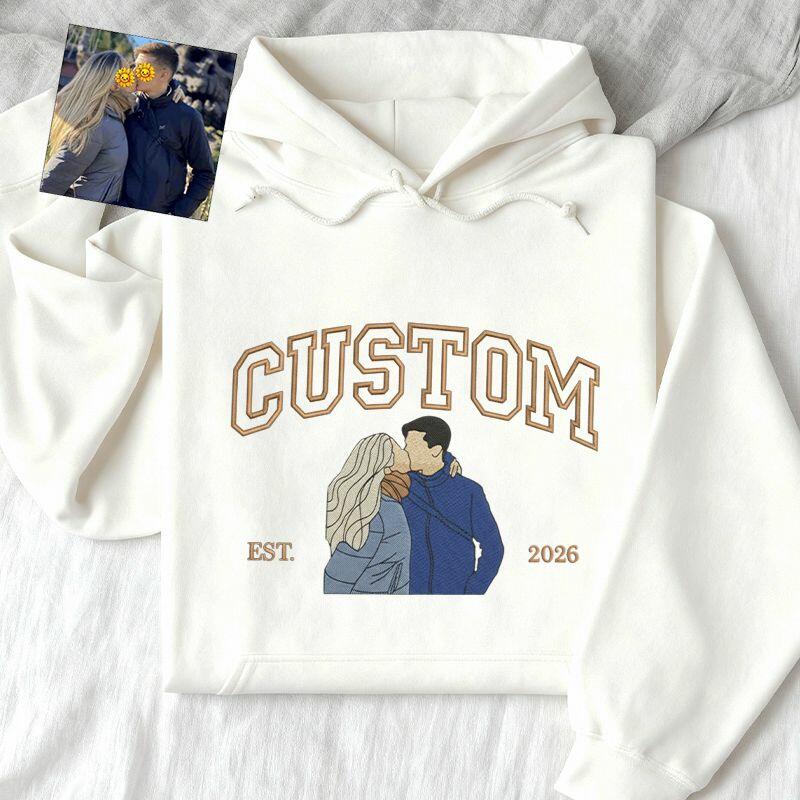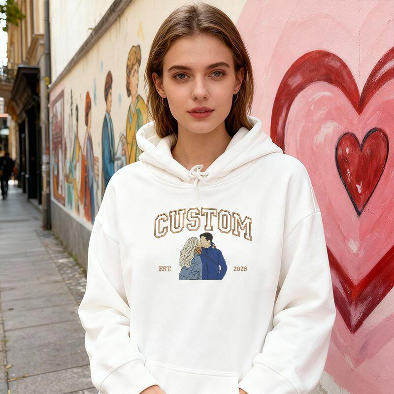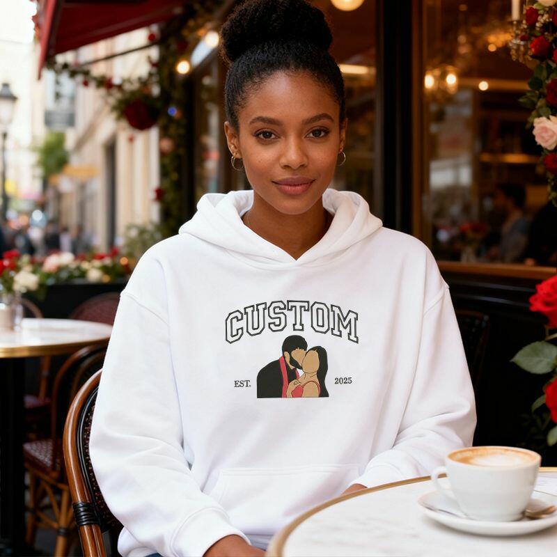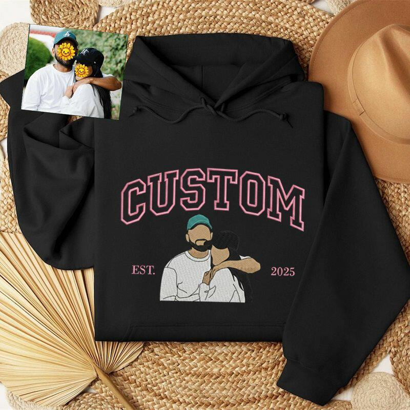 Personalisierter Hoodie mit Stickerei individuellem Foto und Titel für Paare perfektes Valentinstagsgeschenk für Verliebte
