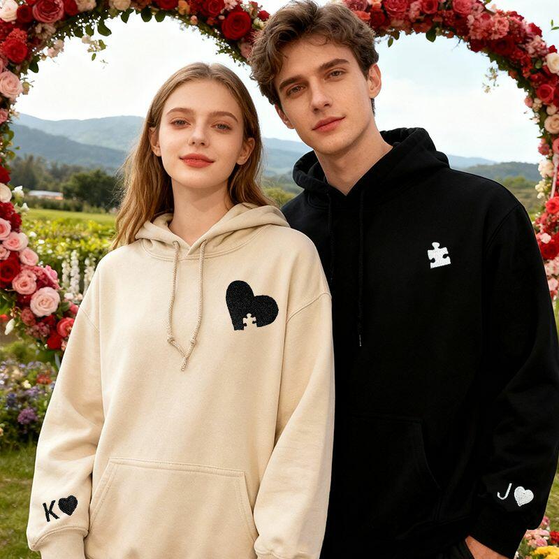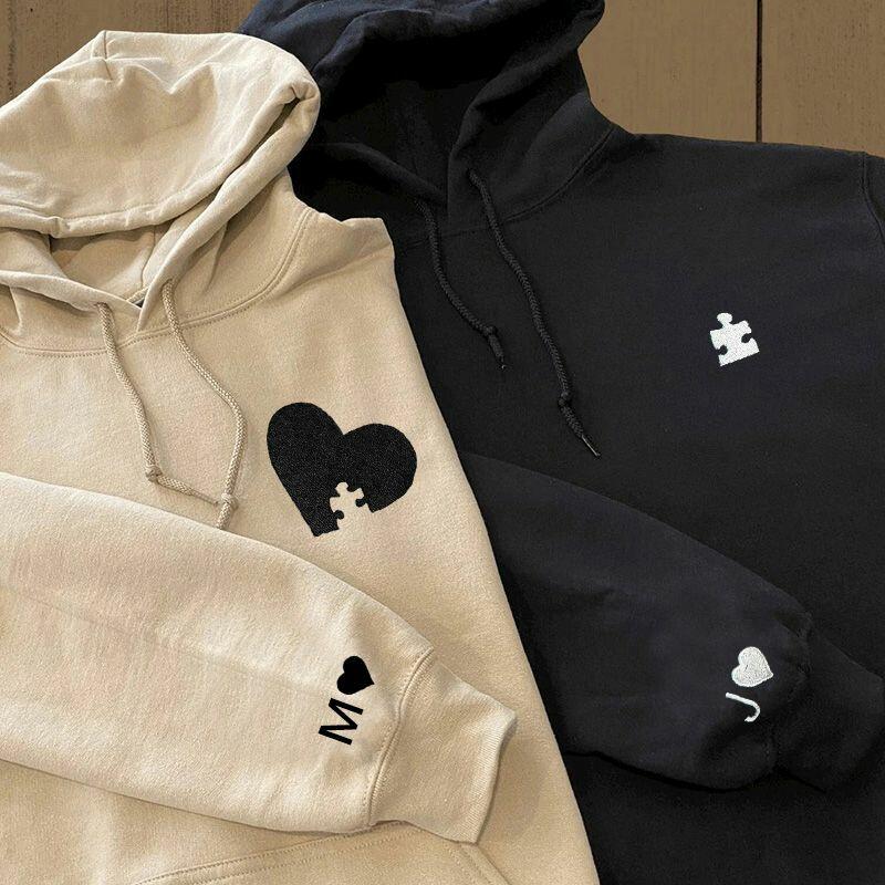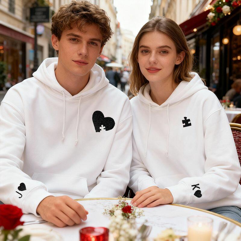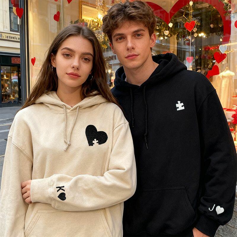 Personalisierter Hoodie mit Stickerei und individuellem Herzpuzzle-Design einzigartiges Valentinstagsgeschenk für Verliebte