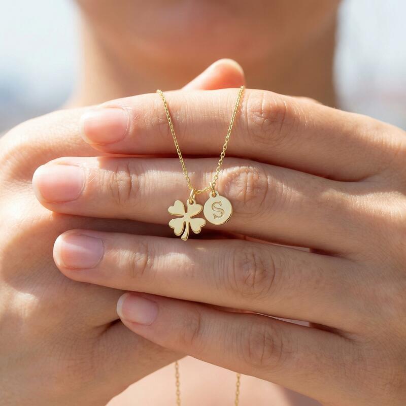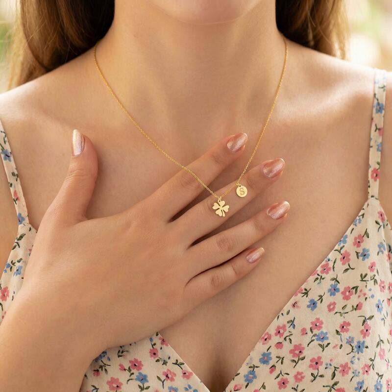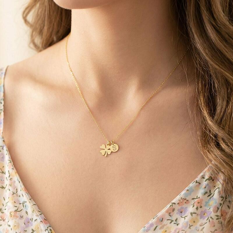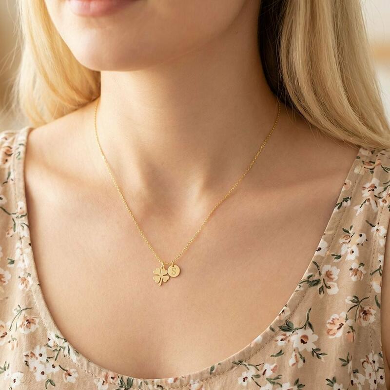 Personalisierte Initialen-Halskette Zierliche Vier-Blatt-Klee-Halskette für sie