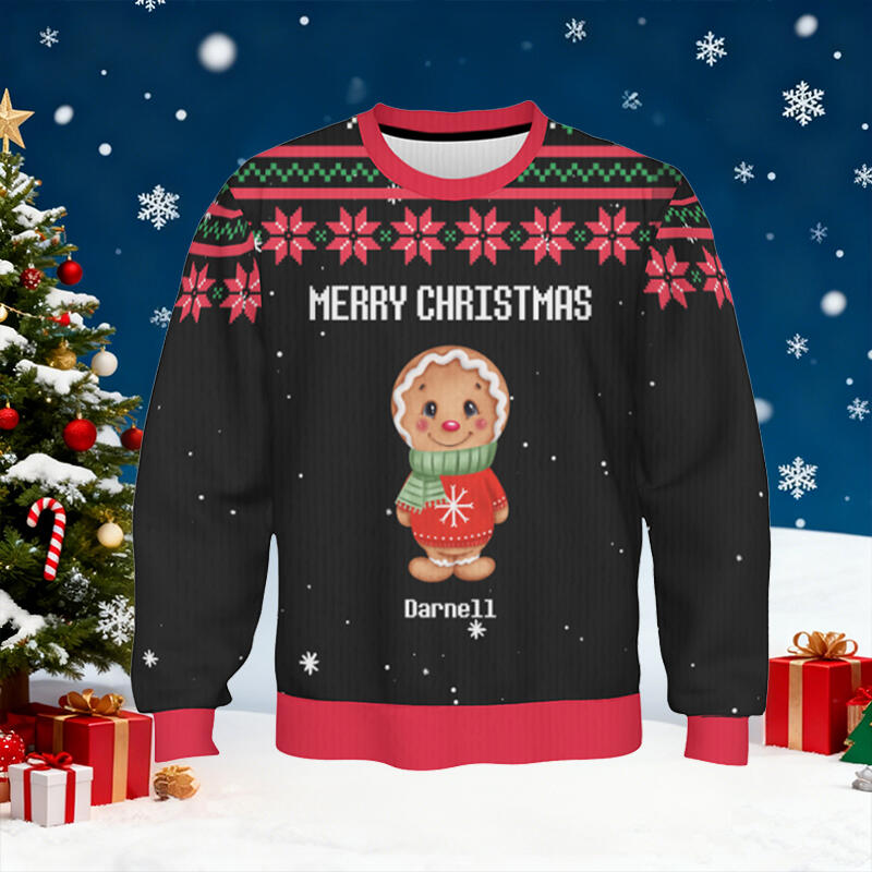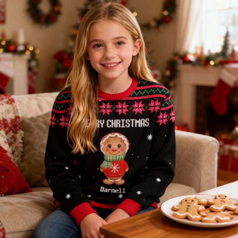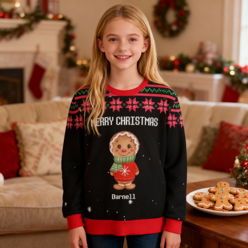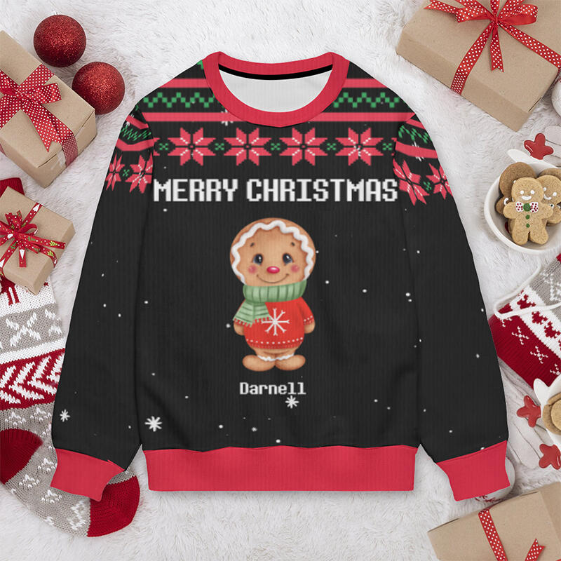 Personalisierter Kinder hässlicher Pullover Unisex Lebkuchenmännchen-Kekse-Design Niedliches Weihnachtsgeschenk für Kinder