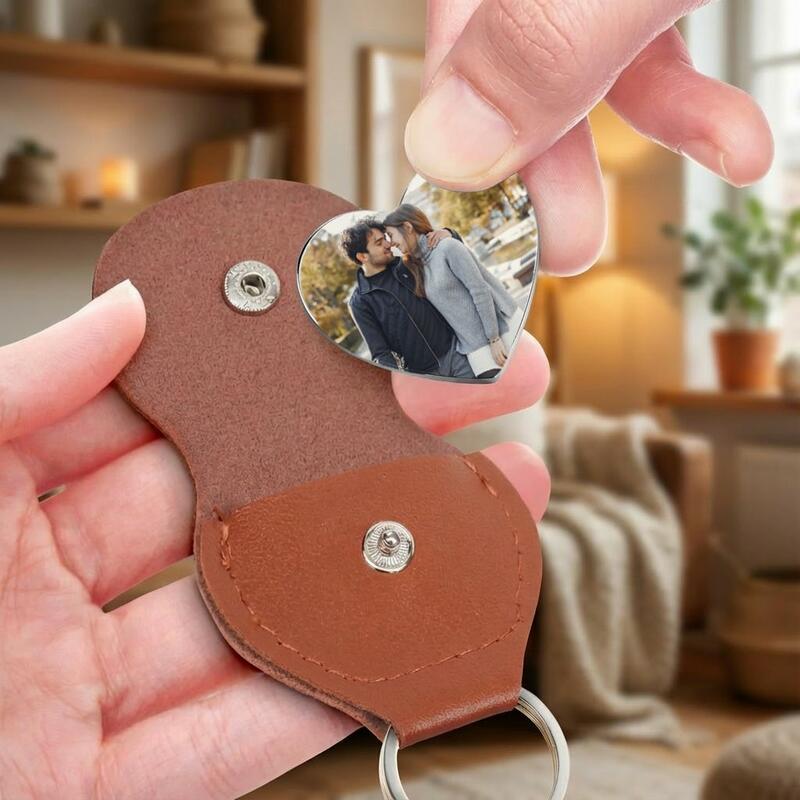 Personalisierter Schlüsselanhänger aus Leder mit individueller Taschen-Umarmung als süßes Geschenk für Paare