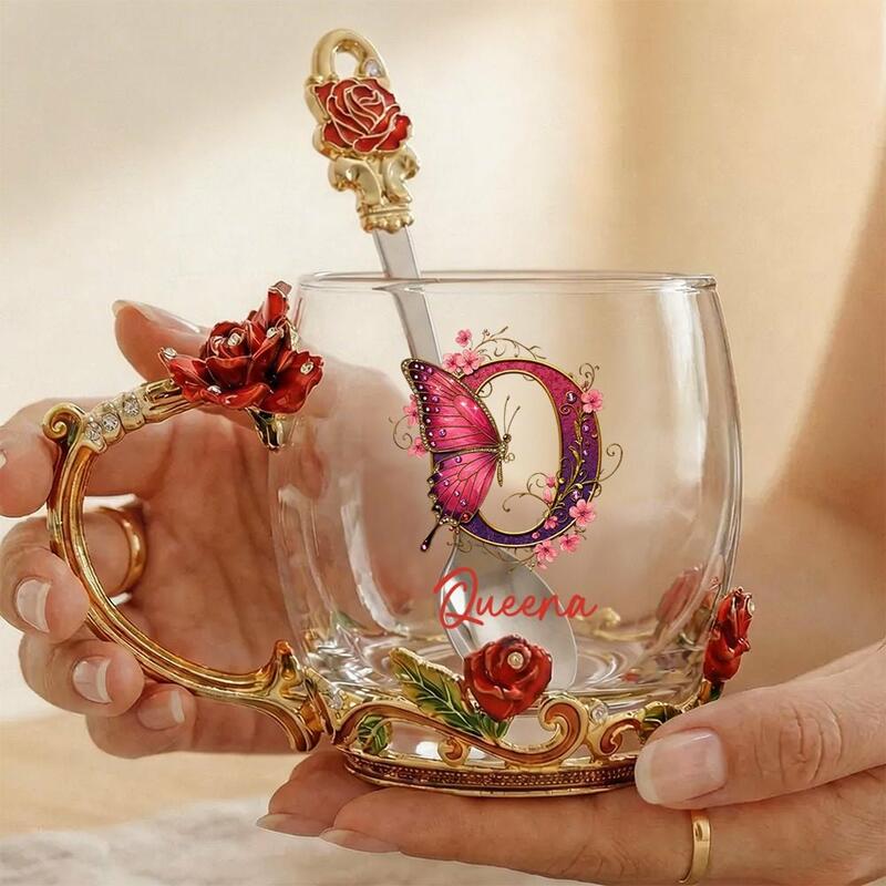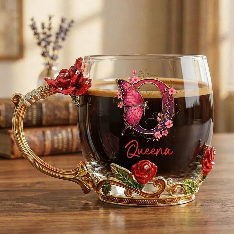 Personalisierte Emaille-Teetasse mit Buchstaben und individuellem Namen perfektes Geschenk für sich selbst