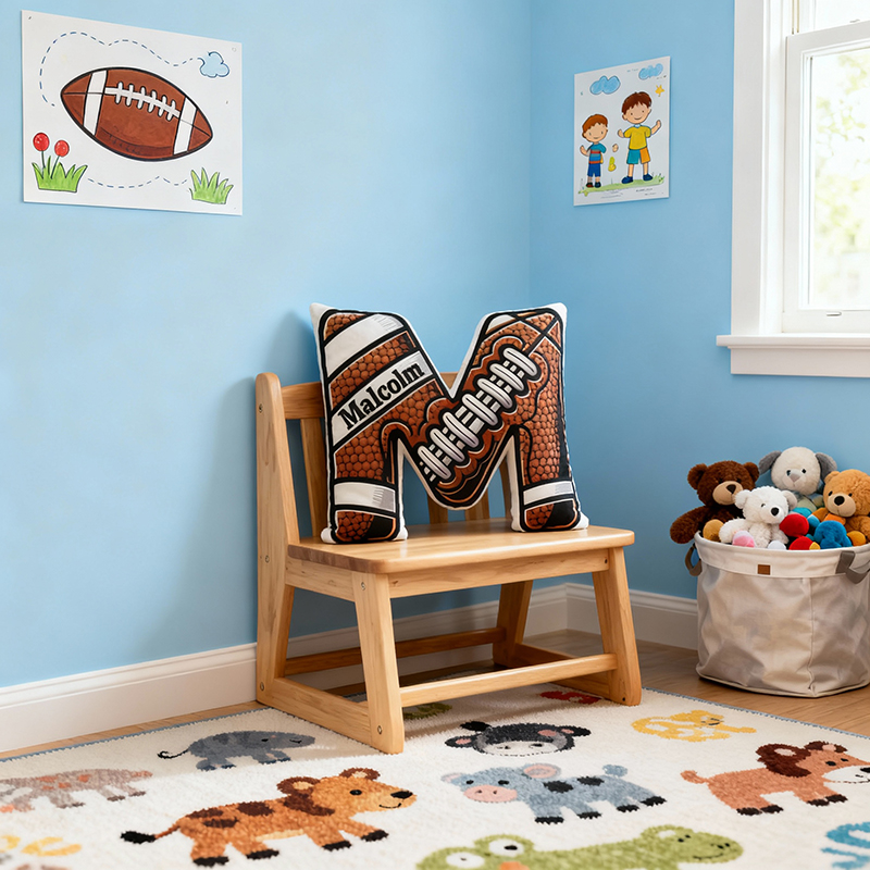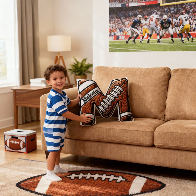 Personalisiertes Buchstaben-Kissen mit American-Football-Motiv Das beste Geschenk für Jungen