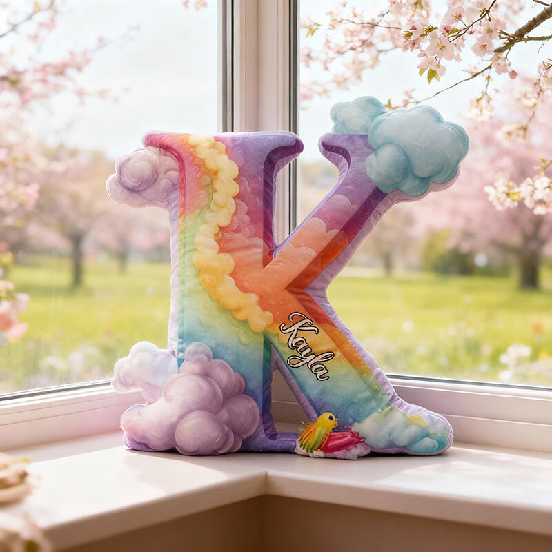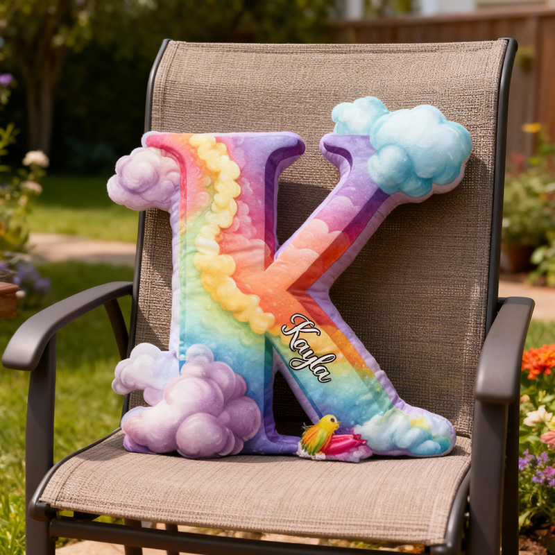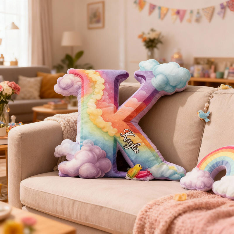 Personalisiertes Buchstaben-Kissen mit Regenbogenmuster Dekoratives Geschenk für Mädchen