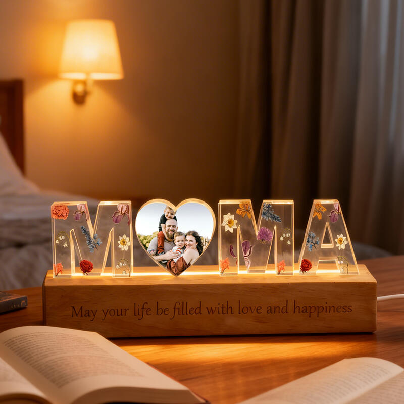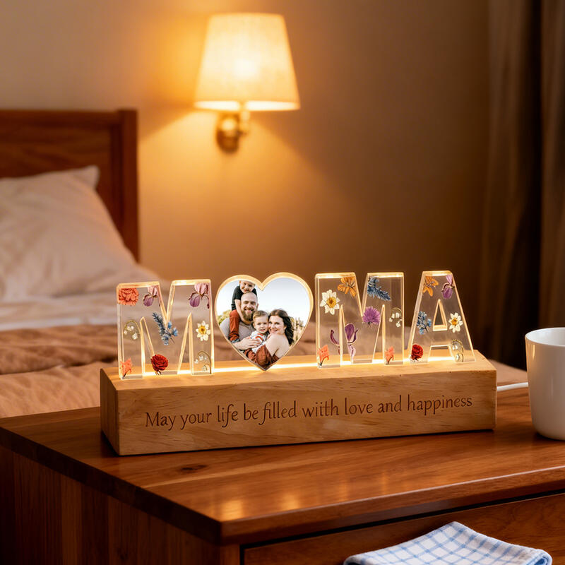 Personalisierte Mama-Acryl-Buchstabenleuchten mit individuellen Fotos und Geburtstagsblumen zum Muttertag