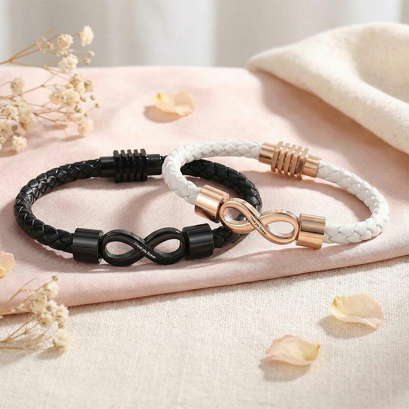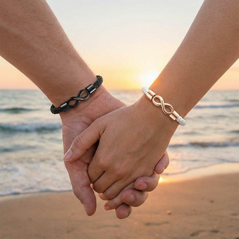 Personalisiertes passendes Armband-Set mit eingraviertem Text und Infinity-Design ein süßes Geschenk für Paare