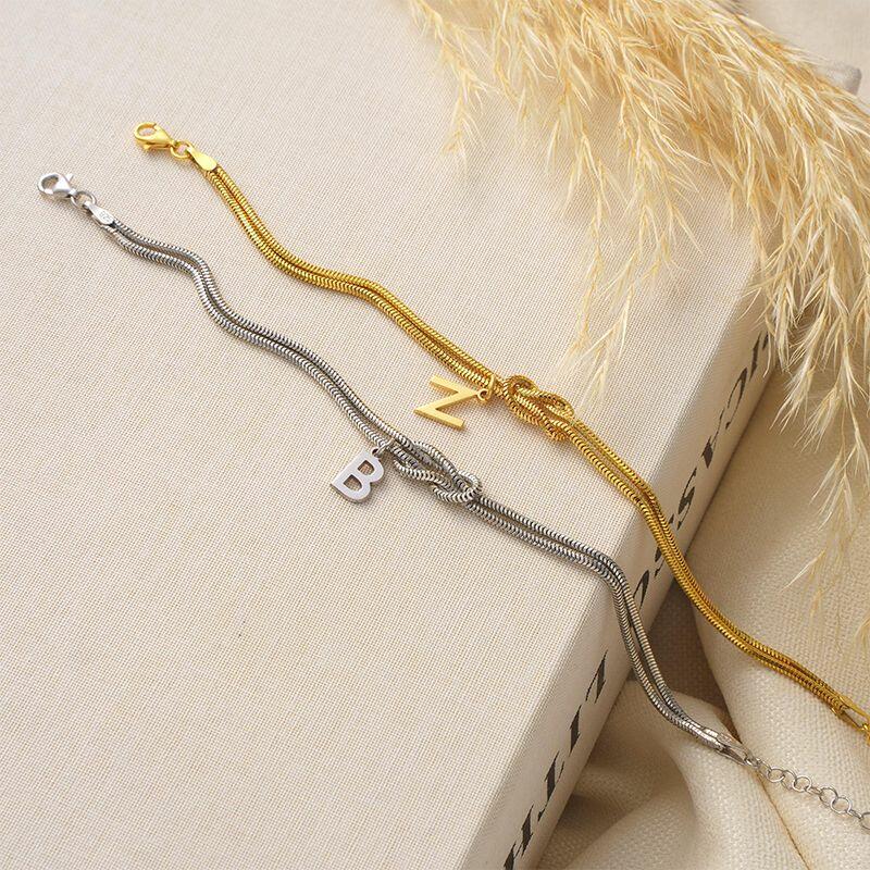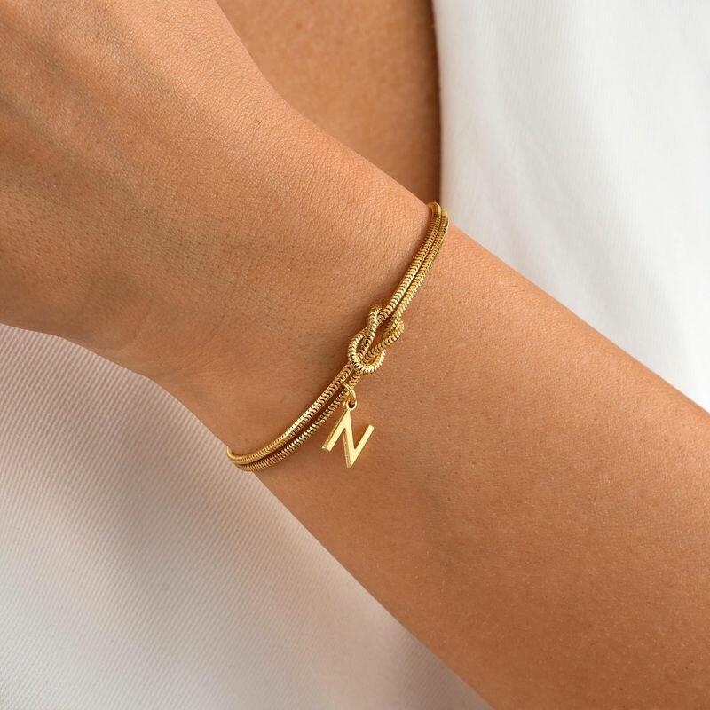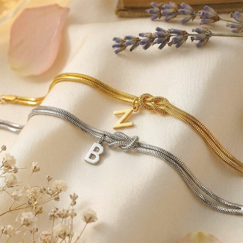 Personalisiertes passendes Knotenarmband mit Initialen und doppeltem Ketten-Design ein exquisites Geschenk für Paare