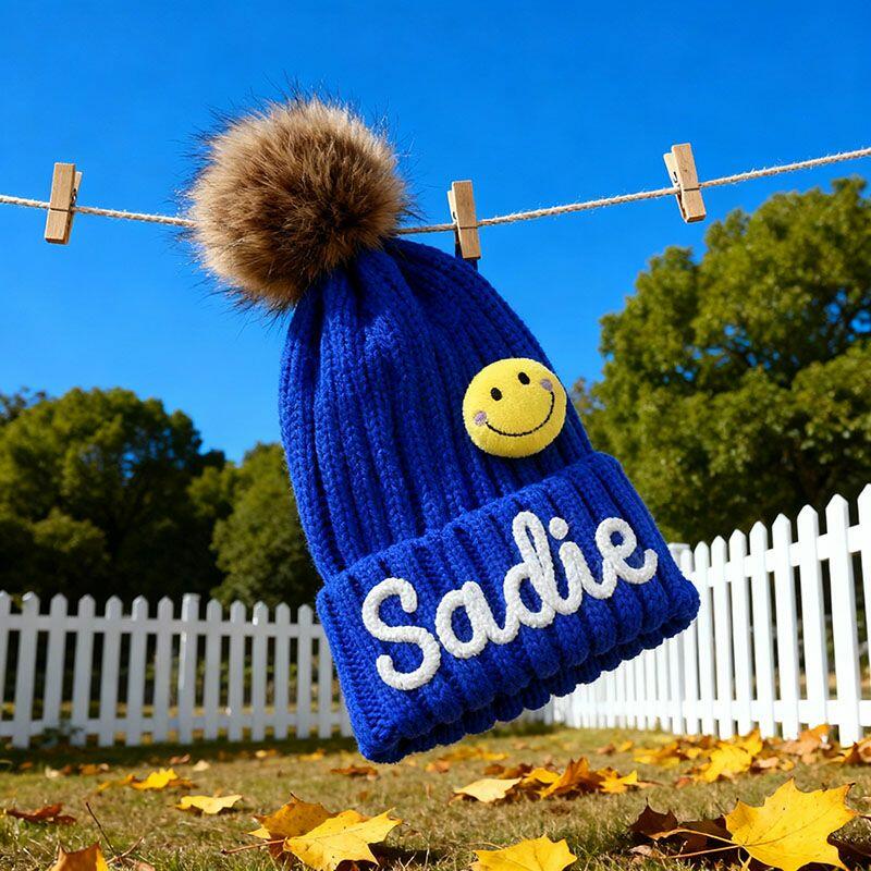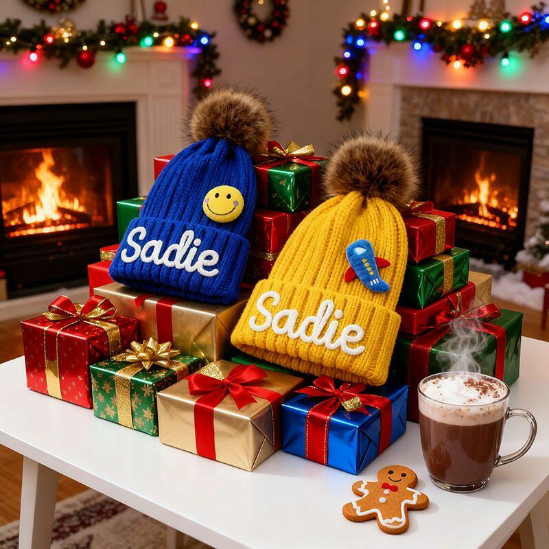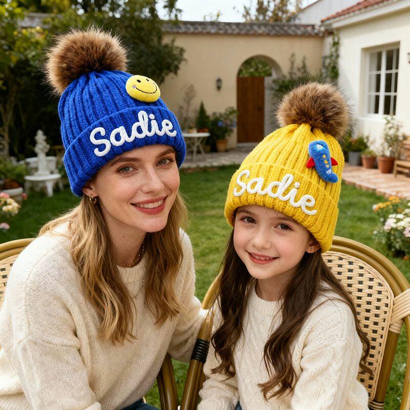 Personalisierte Strickmütze mit Namen und optionalem Zubehör ein warmes Geschenk für die Mutter