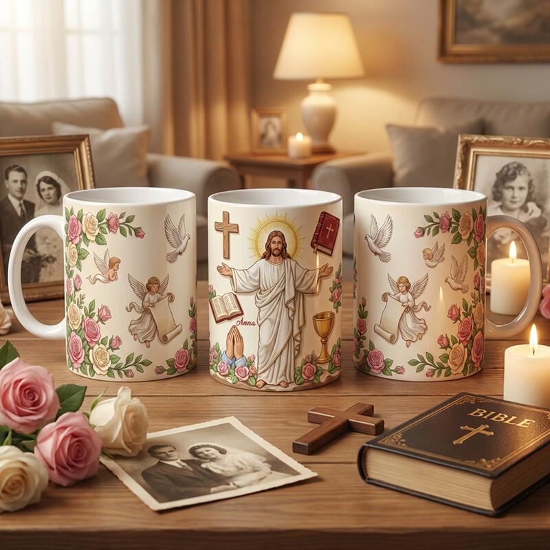 Personalisierte Namensbecher mit Jesus-Design Tolles Geschenk für die Familie