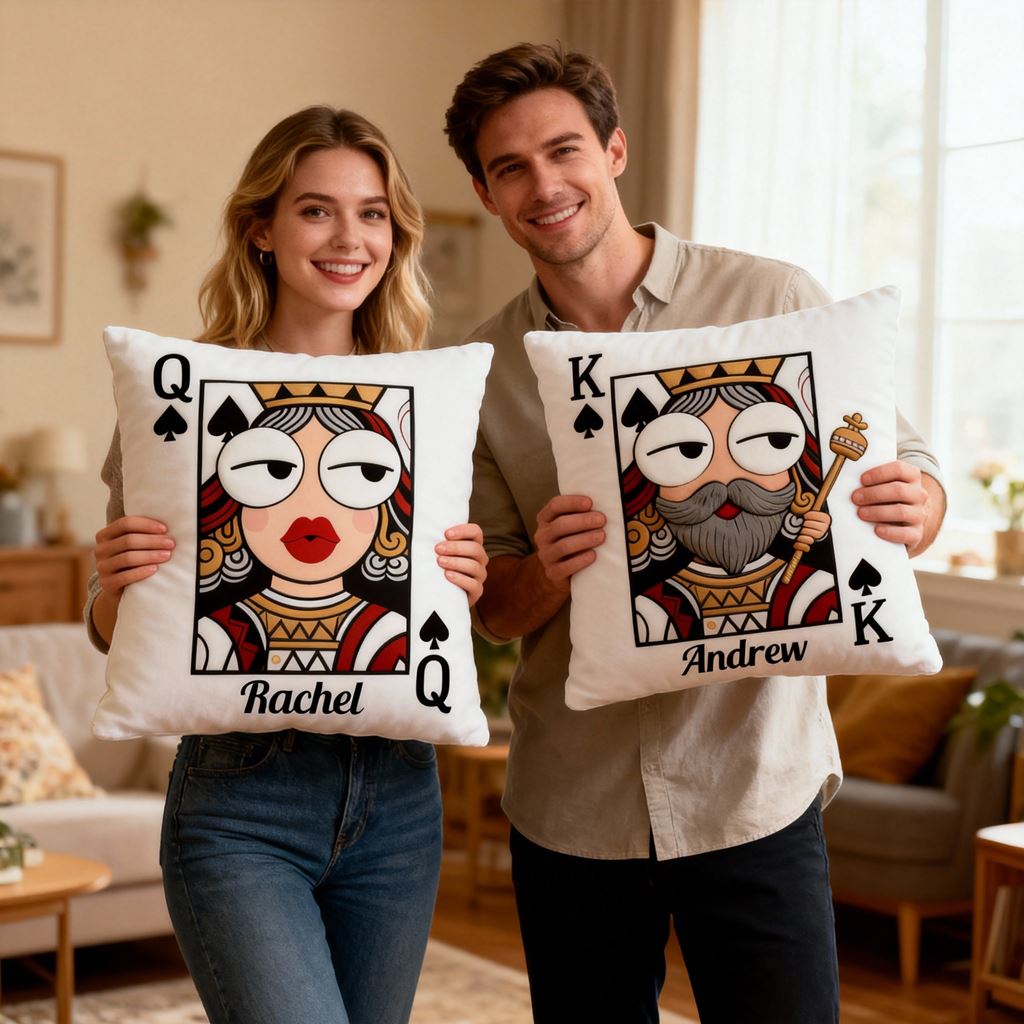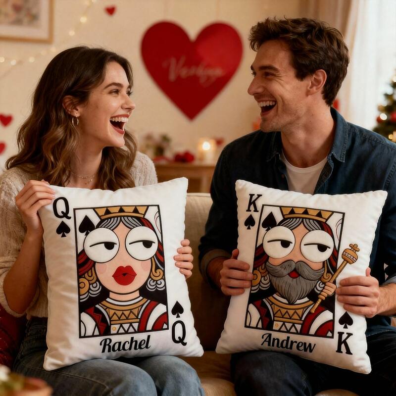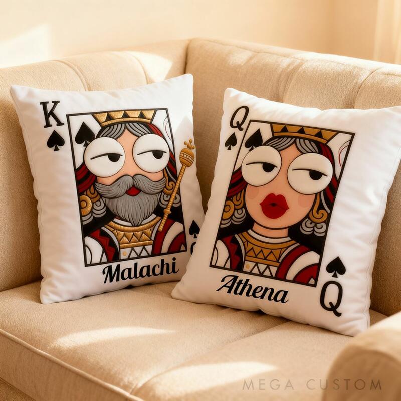Personalisiertes Namenskissen Paar Poker König und Königin Kissen Valentinstagsgeschenk für Paare