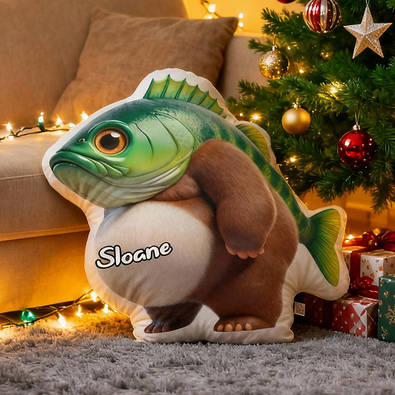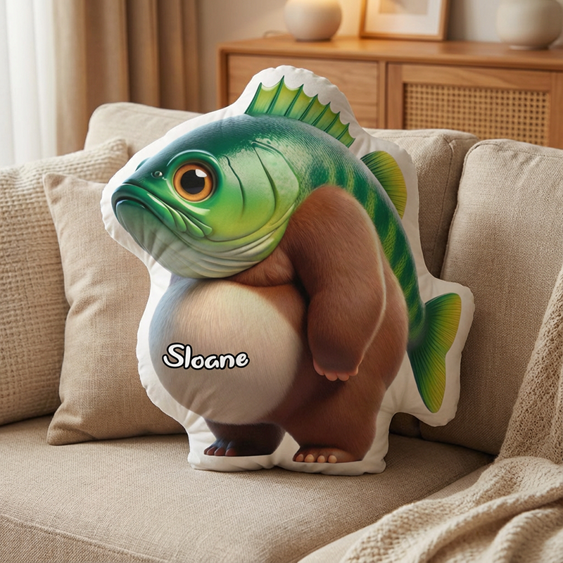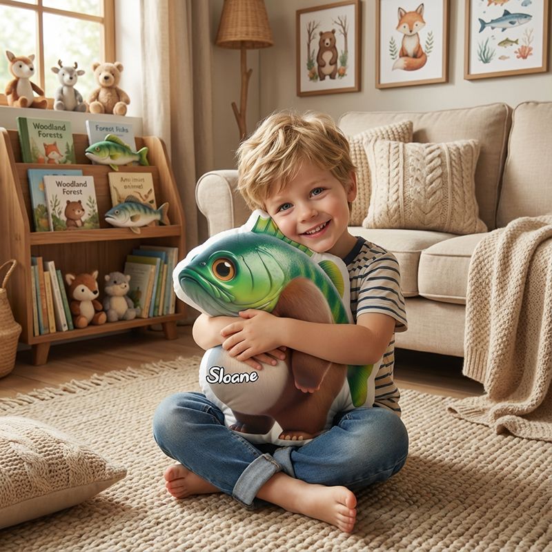 Personalisiertes Namenskissen mit großem Fischmuster ein kreatives Geschenk für Kinder