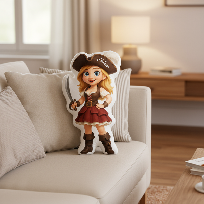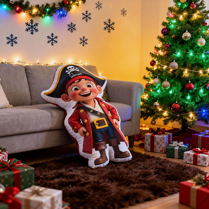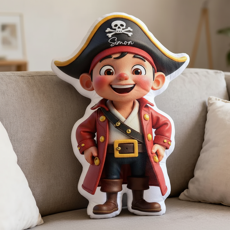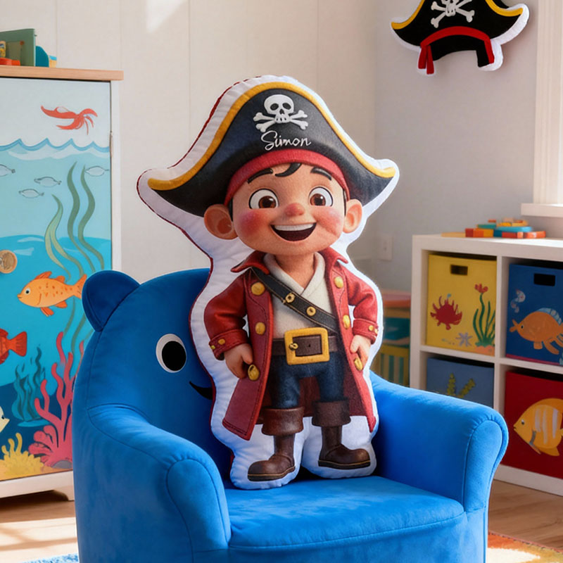 Personalisiertes Kissen mit Namen und Cartoon-Kapitän-Motiv ein schönes Geschenk für Kinder