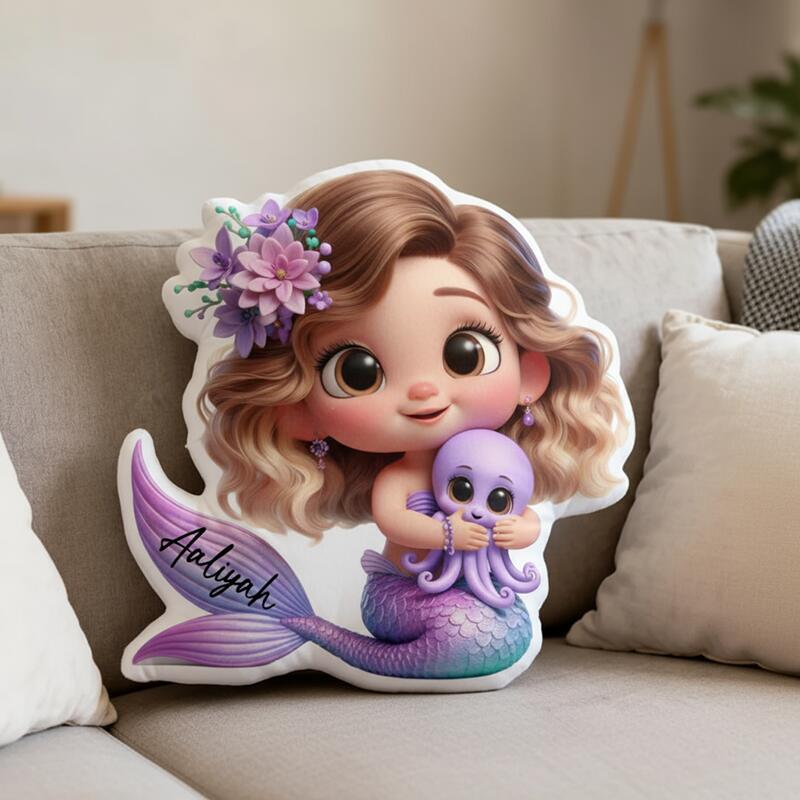 Personalisiertes Namenskissen mit Meerjungfrauenprinzessinnen-Design Kostbares Geschenk für Kinder
