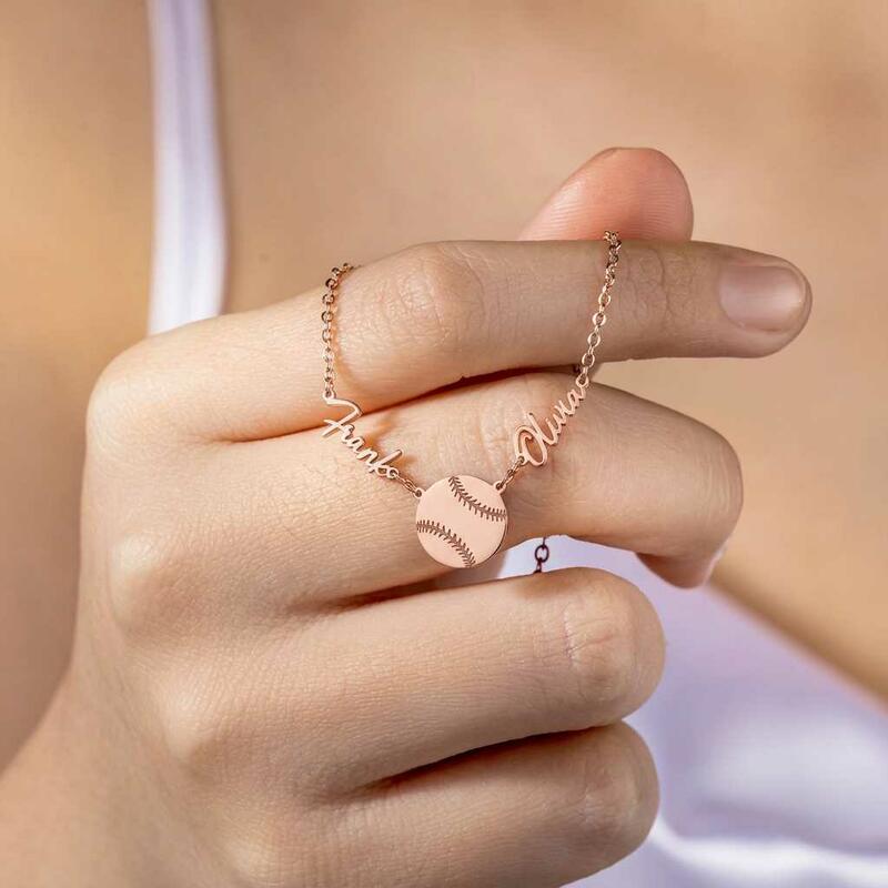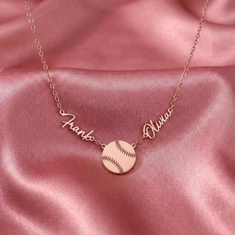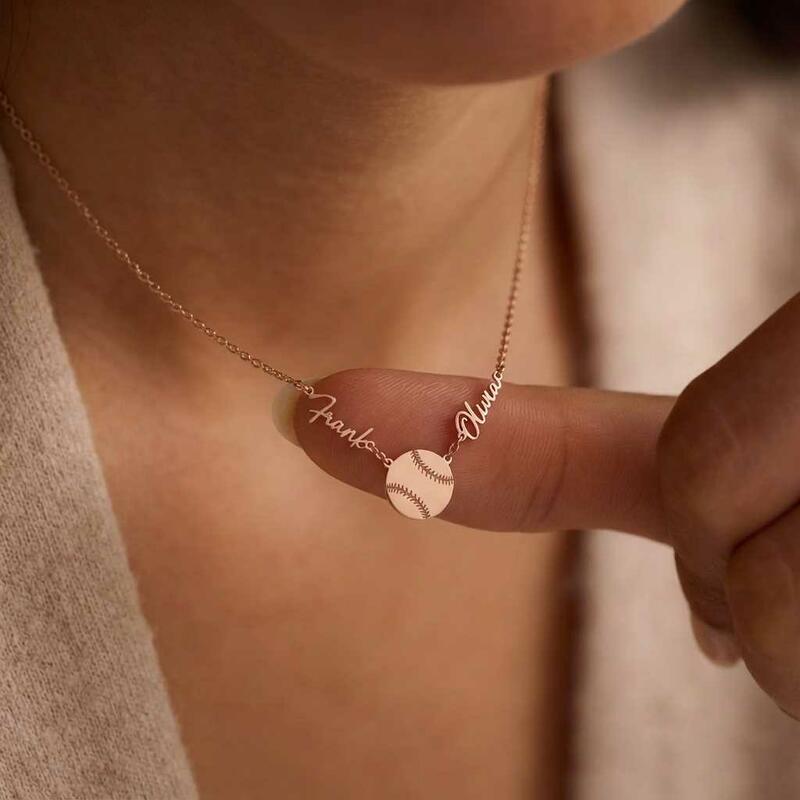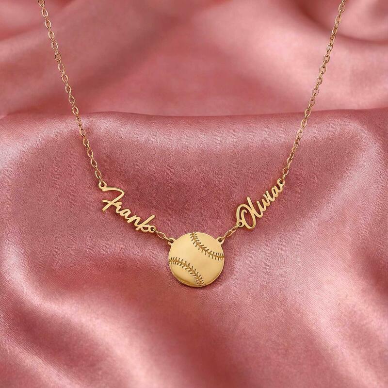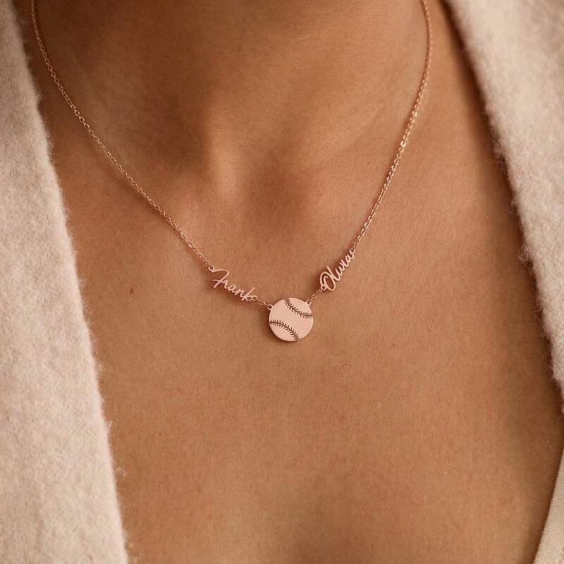 Personalisierte Halsketten mit den Namen des Paares und Baseball-Design ein Geschenk für Sportliebhaber