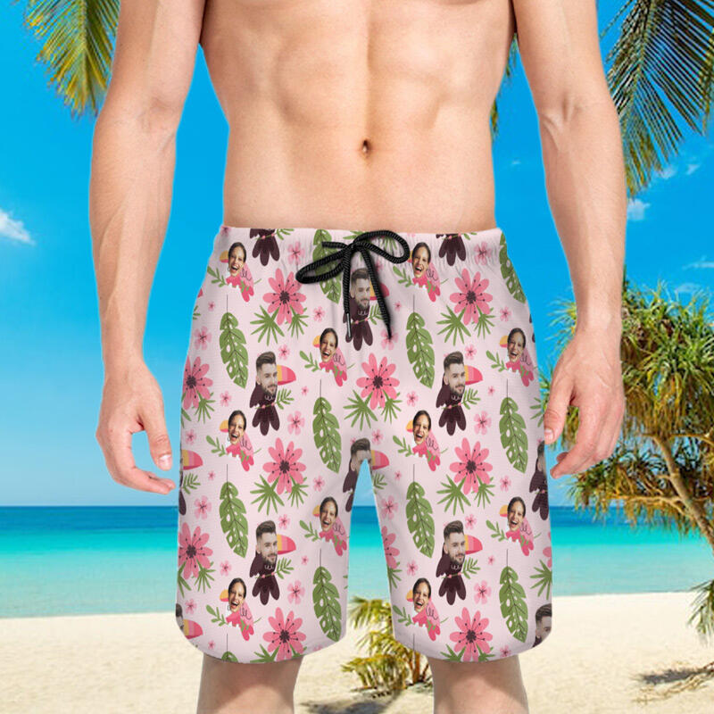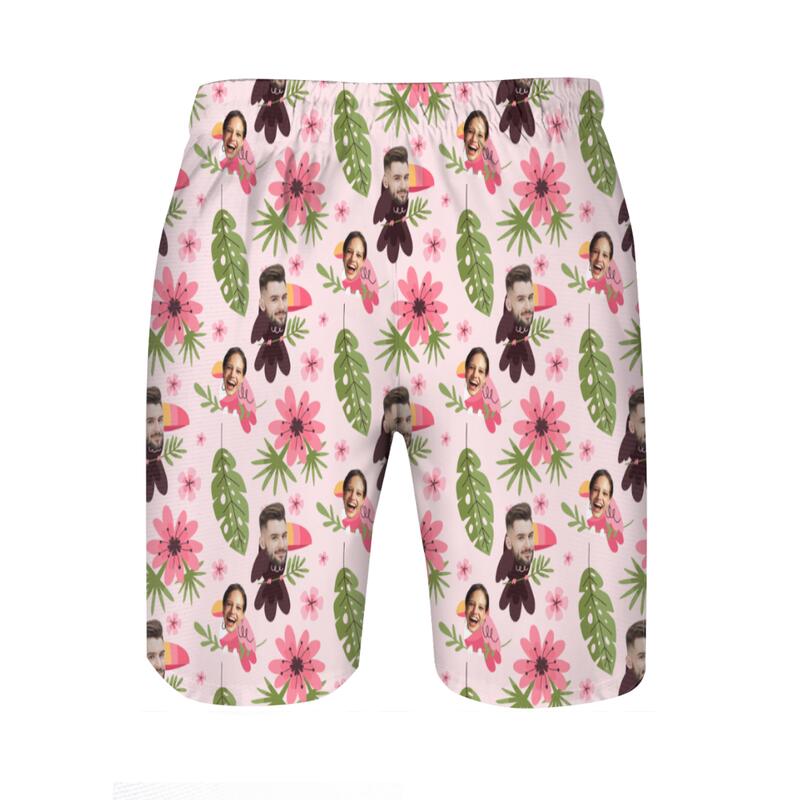 Personalisierte Foto Herren Strandshorts mit rosa Blumenmuster Niedliches Geschenk für die Familie