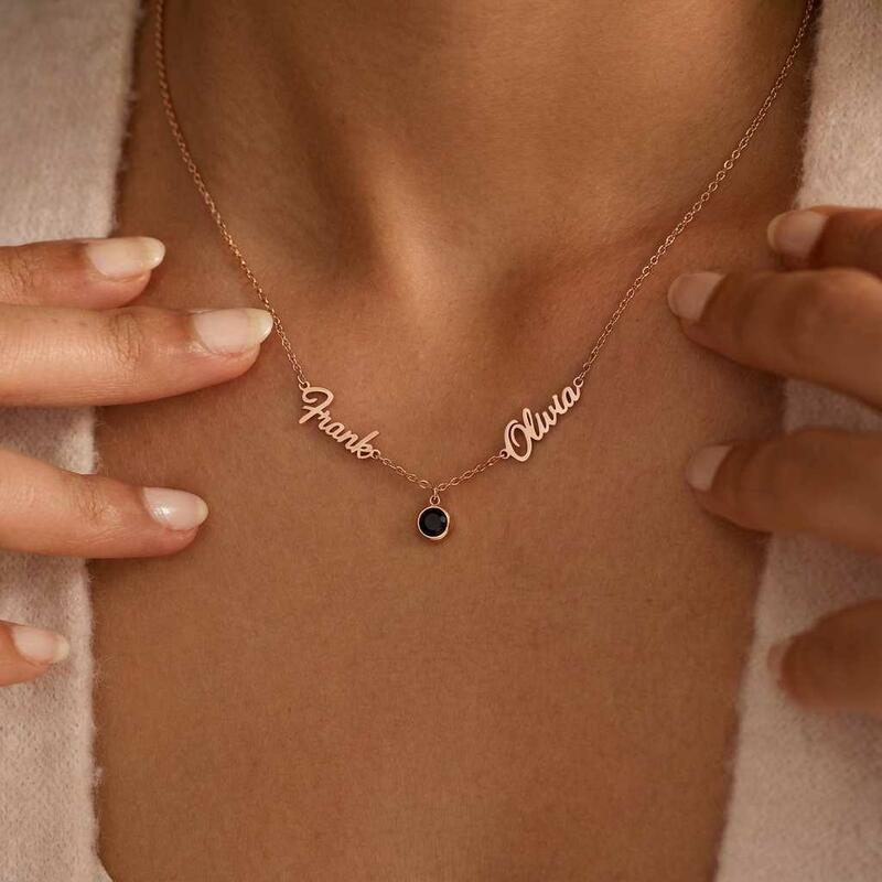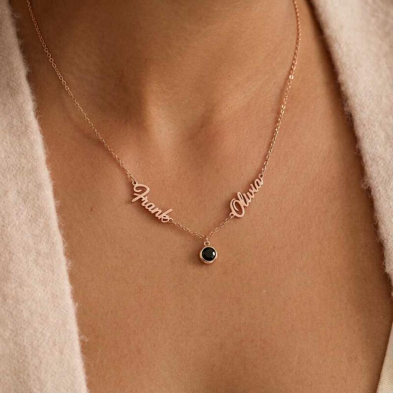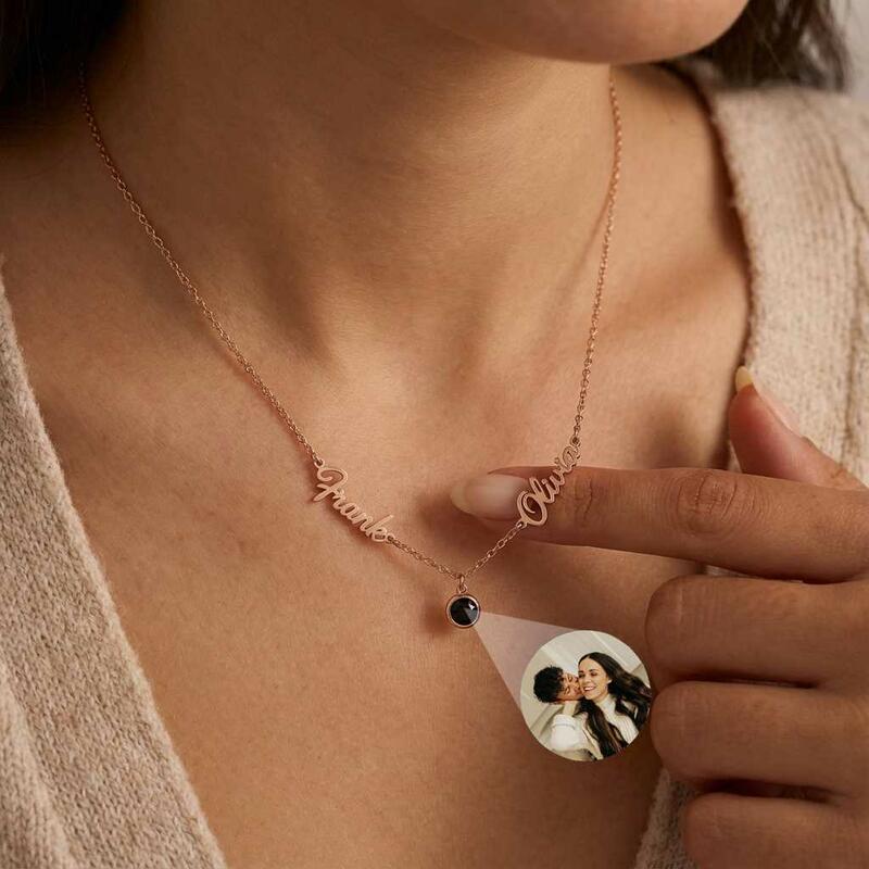 Personalisierte Halskette mit projiziertem Bild individuell gestaltet mit den Namen des Paares ein süßes Geschenk für Ihre Frau
