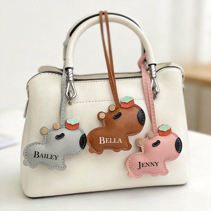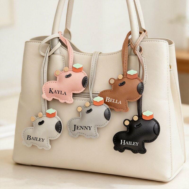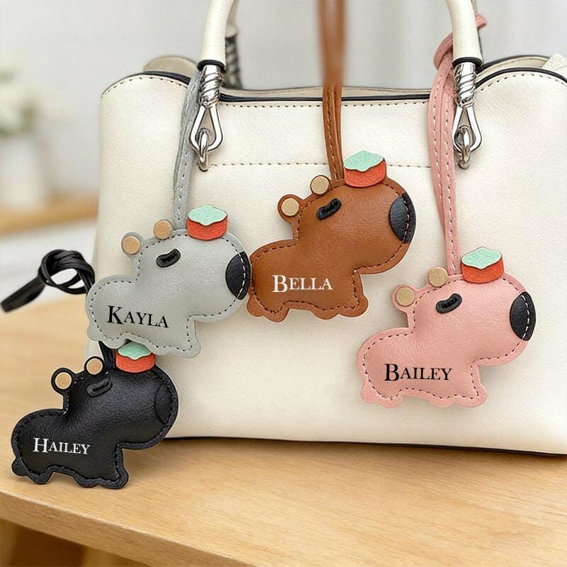 Personalisierter Taschenanhänger aus PU-Leder mit niedlichem Kapibala und individuellem Namen lustiges Geschenk für ihre Freunde